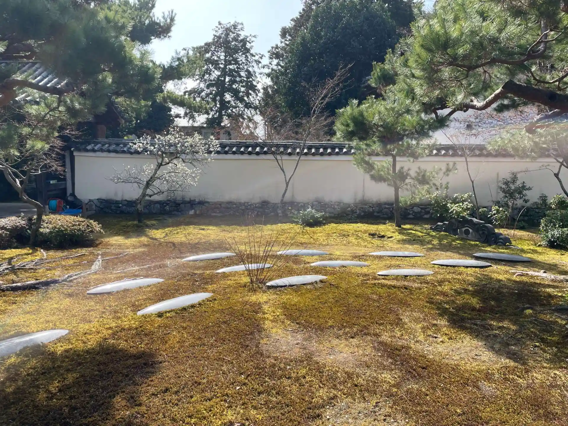 苔庭に石板を敷いてあり オブジェのような感じもします。