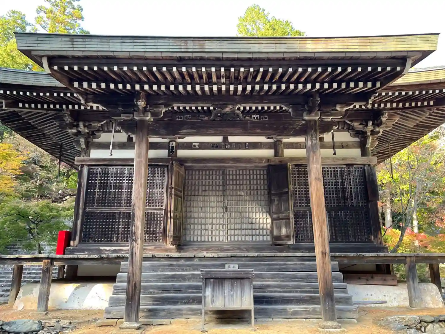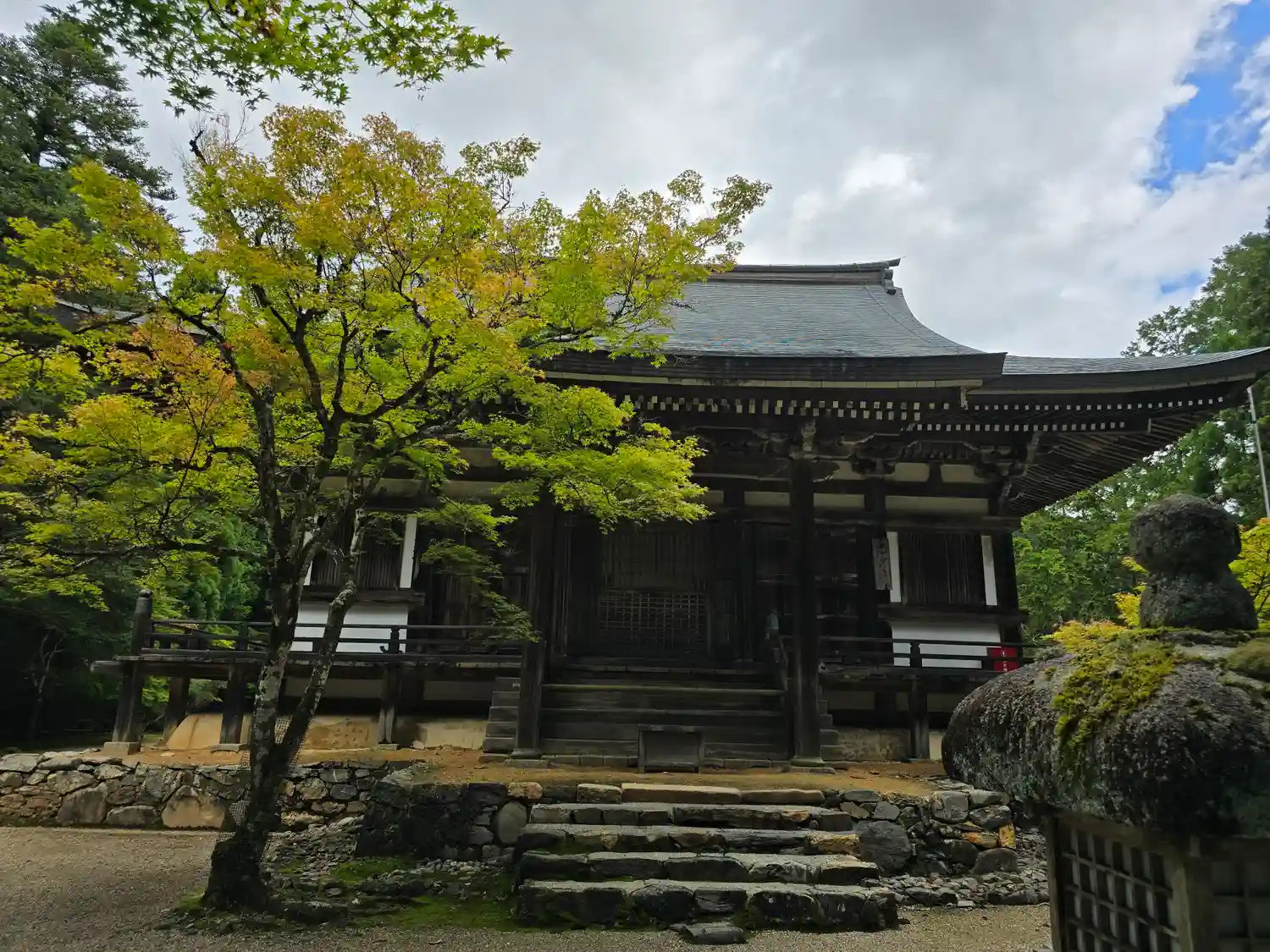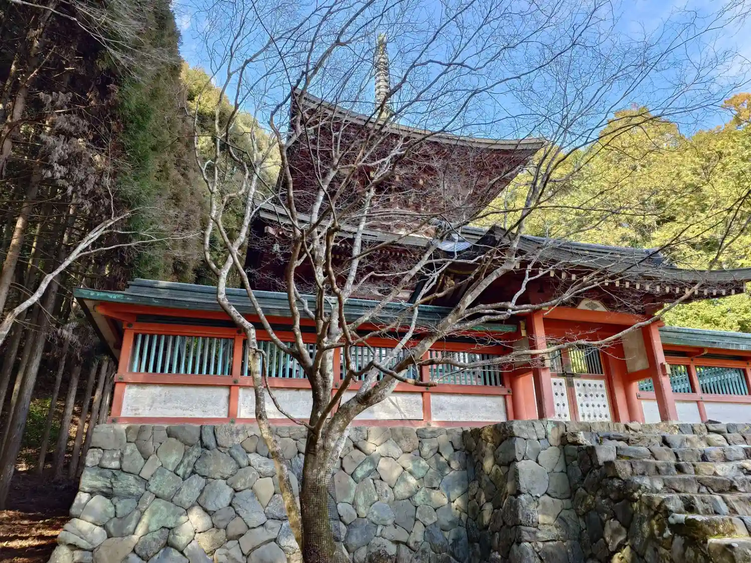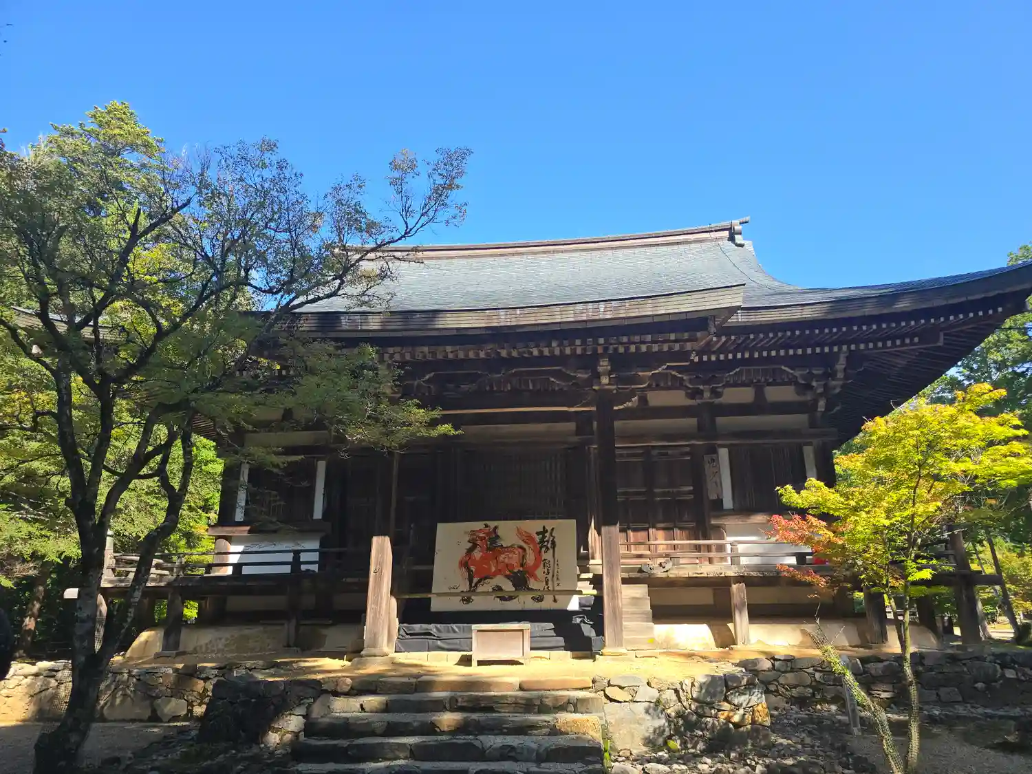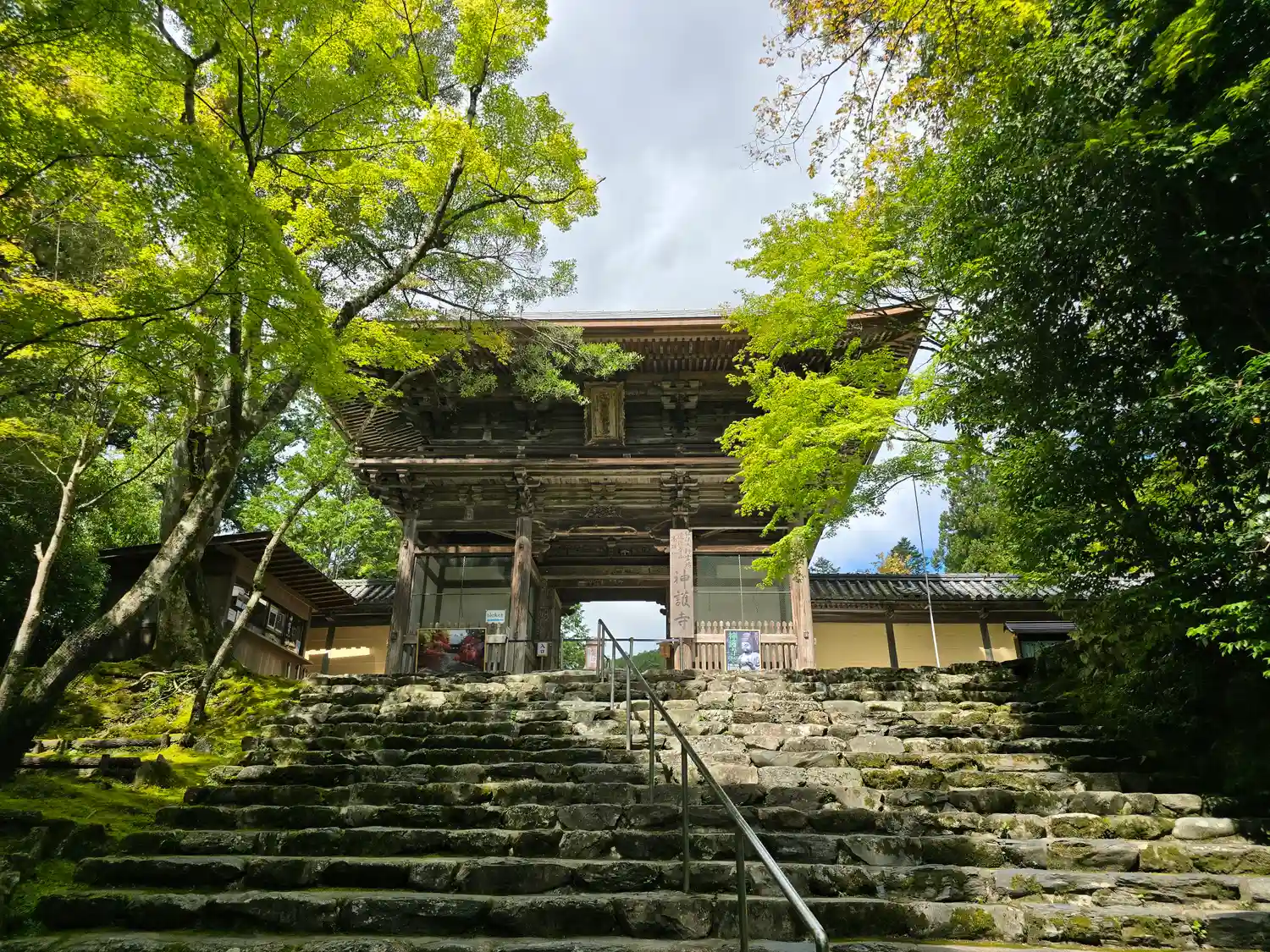 楼門は改修工事中でした。さすがは山岳寺院、境内までの長い階段で激しく息切れ中。