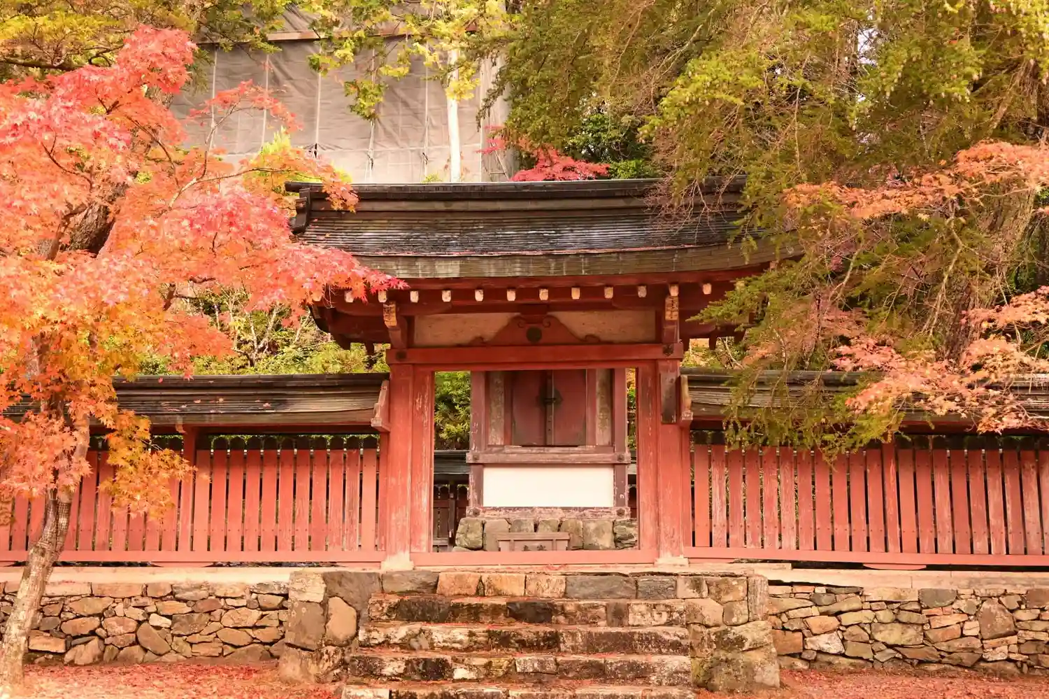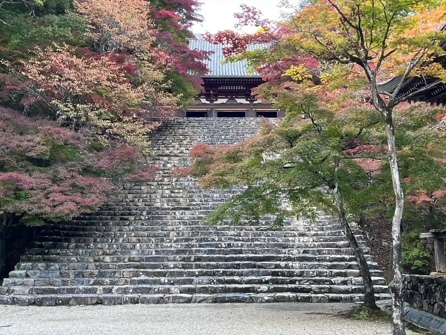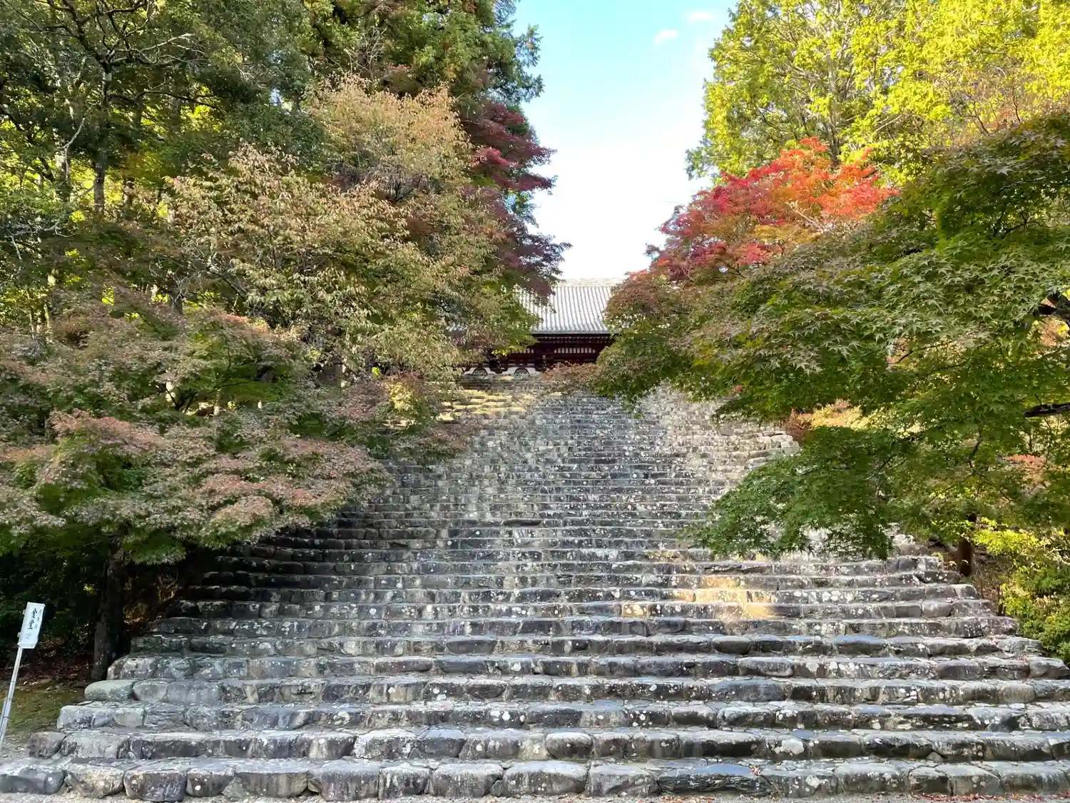 山門前の石段。いい感じです。山門が修復中なのが残念ですが、あんまり写ってません。