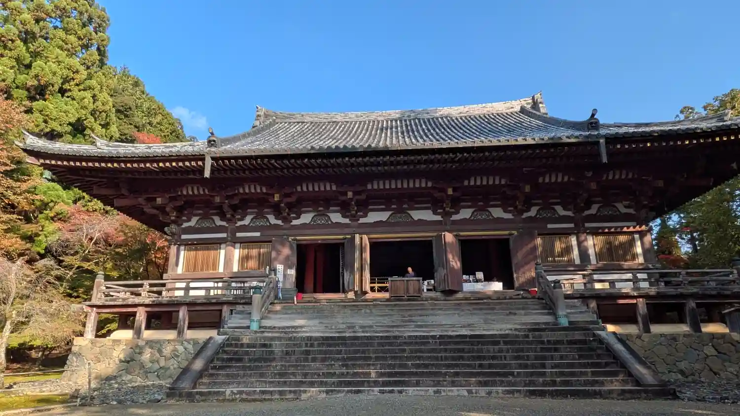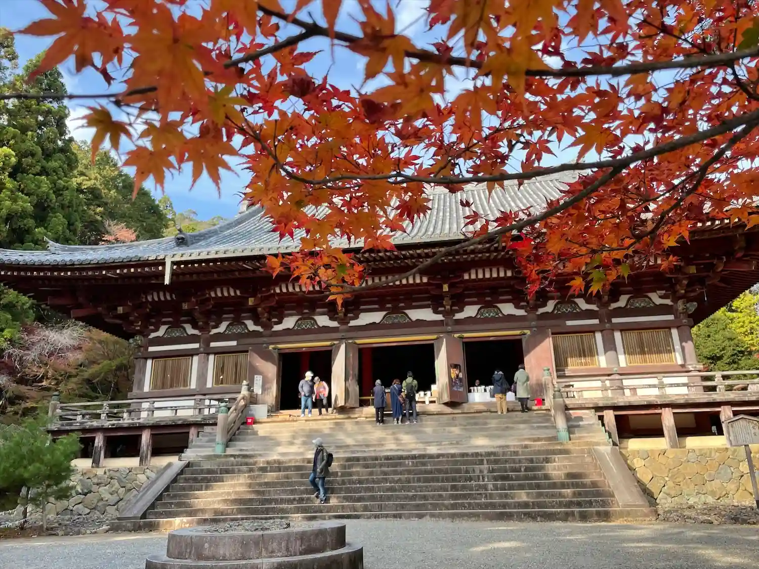 金堂への階段。ここでよく撮影が行われます。