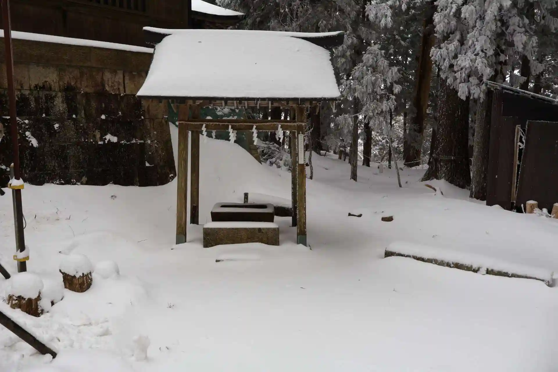 境内内の雪化粧。この日は積雪14cmとの事