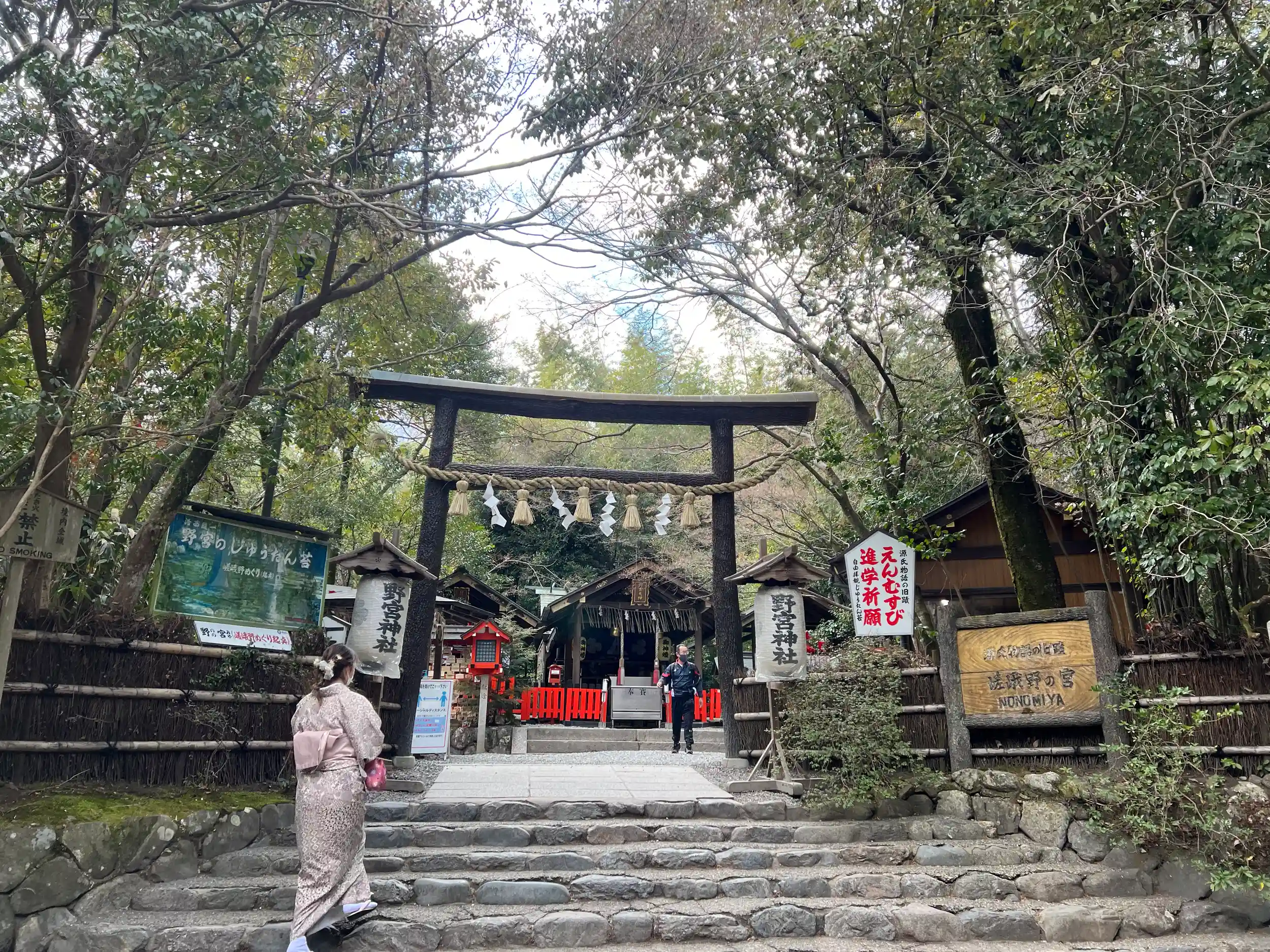 嵯峨野の清らかな場所を選んで建てられており、黒木鳥居と小柴垣は平安の風情を醸し出しています。