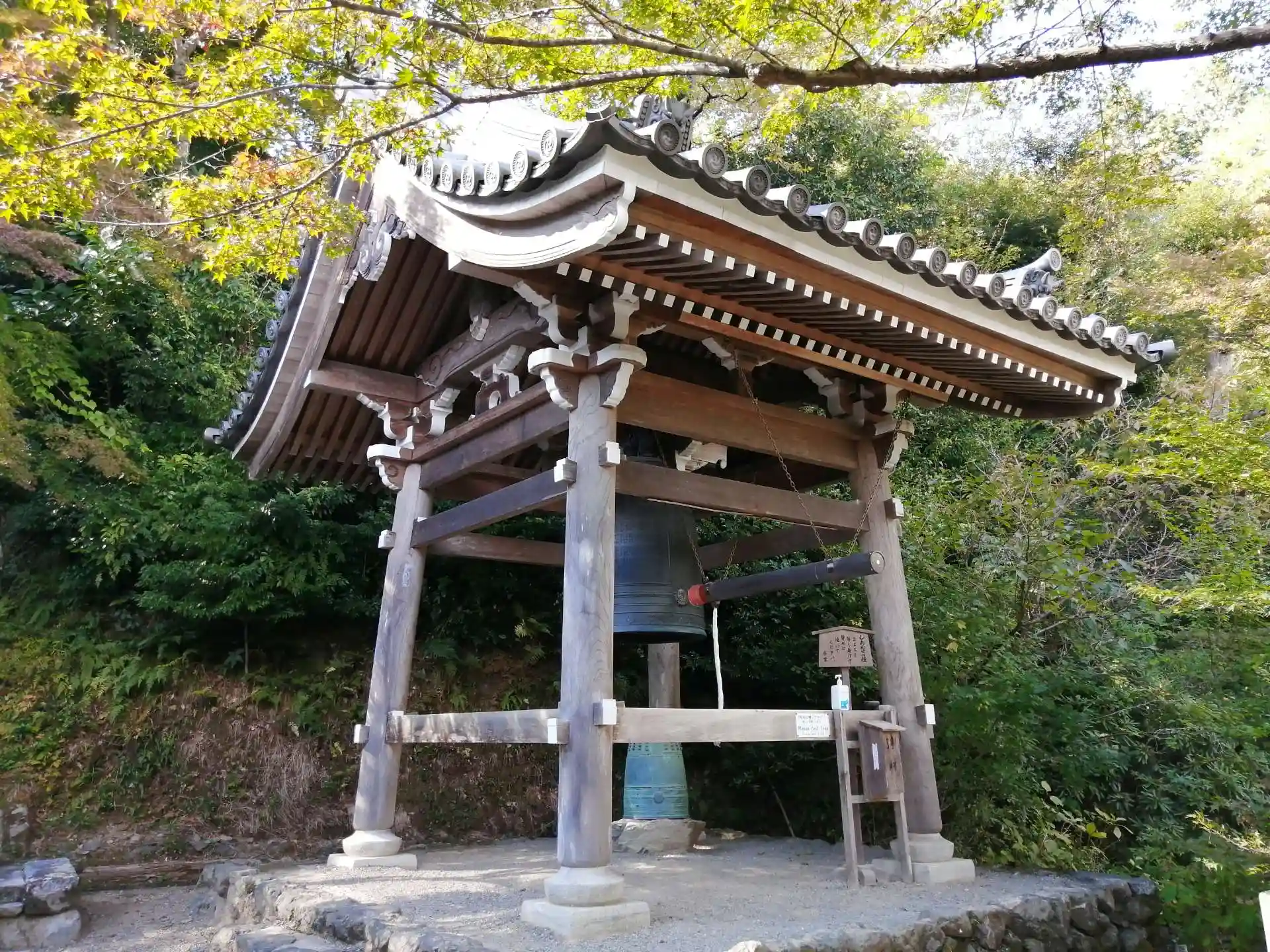 本堂横には弁天堂、その横にはしあわせの鐘(鐘楼)があり自由に撞いて構わないとの事でしたので撞かせて頂きました(気持ちの浄財を納めて)。石段を上ると湛空上人廟、そこから左手奥へ進むと時雨亭跡。眼下に京都市内が見えます。廟へ戻って右手はずっと墓地(公家さんが多いそうです)。めちゃ広いです。高野山の奥の院並み?ぐるっと歩くと八社宮。それと小倉餡発祥の地の碑がありました。