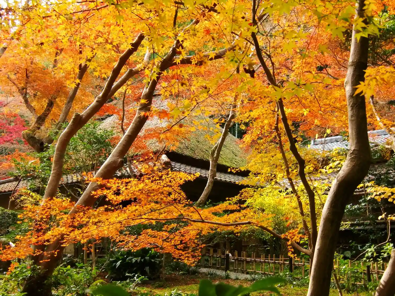竹林と楓