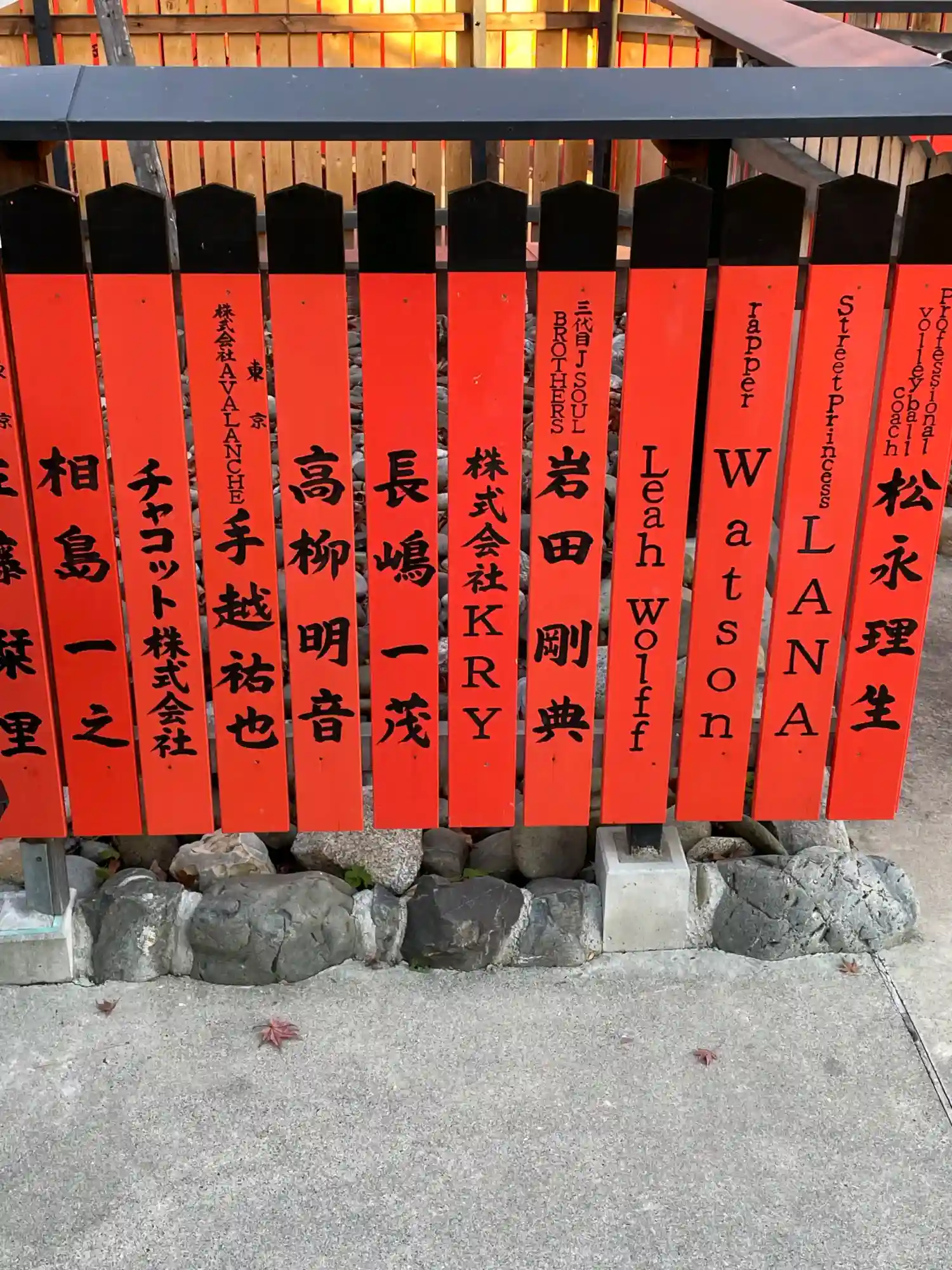 この玉垣には有名人の名前がけっこうたくさんあるんですよ。