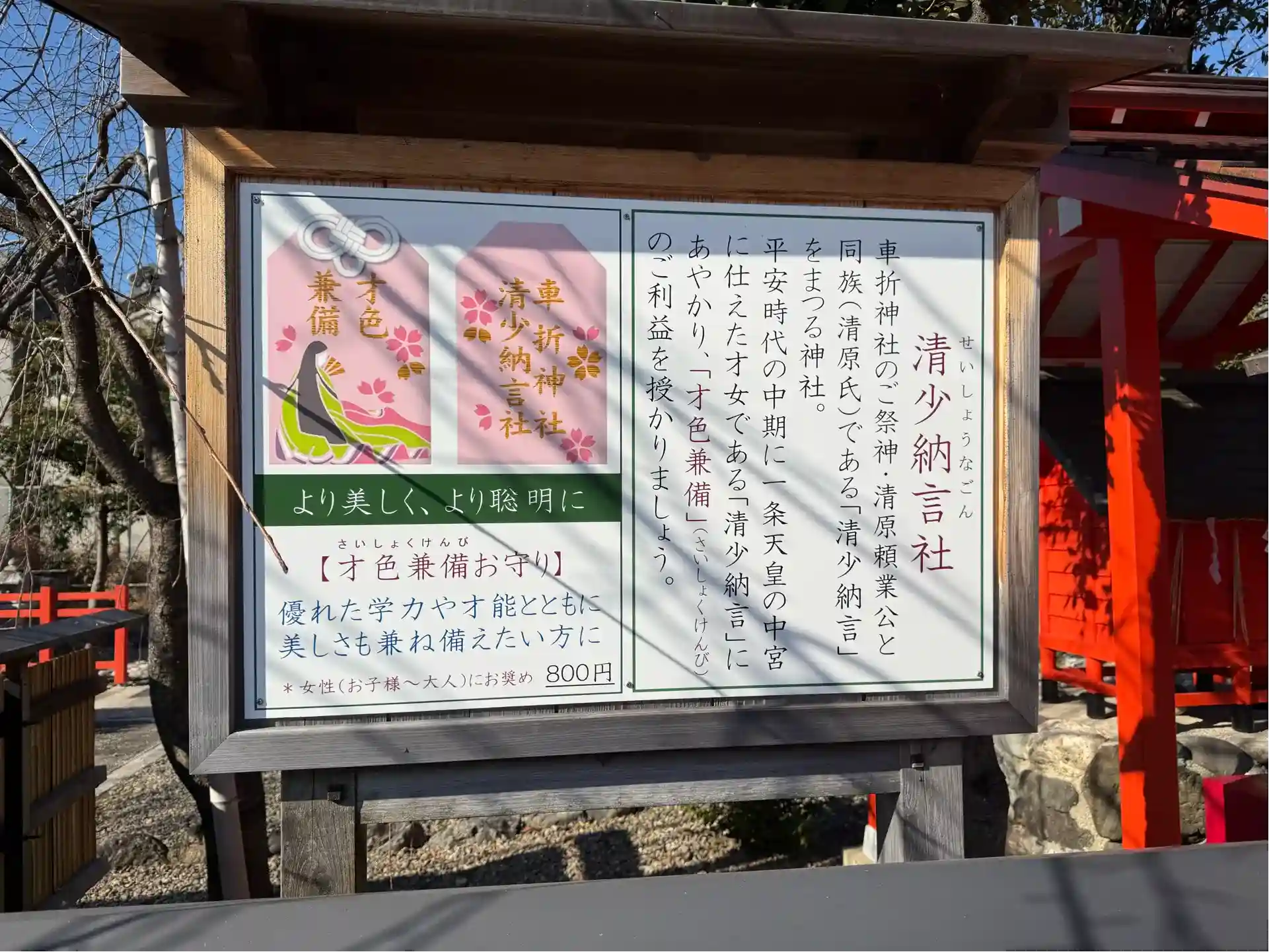 参拝させて頂きました。御祭神は清原頼業。頼業は平安末期の学者で、一族に清少納言がいるため、清少納言社もあるらしい。後嵯峨天皇が御遊幸の際に牛車のかなえ轅(かなえ)が折れたことから正一位車折(くるまざき)大明神の神号を賜ったとか。