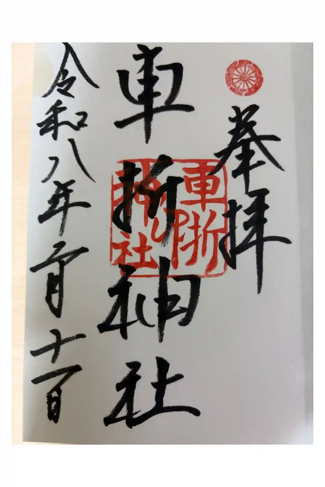 真ん中に車折神社と書かれ、右上に源氏車紋の印、真ん中に車折神社の印が押されています。