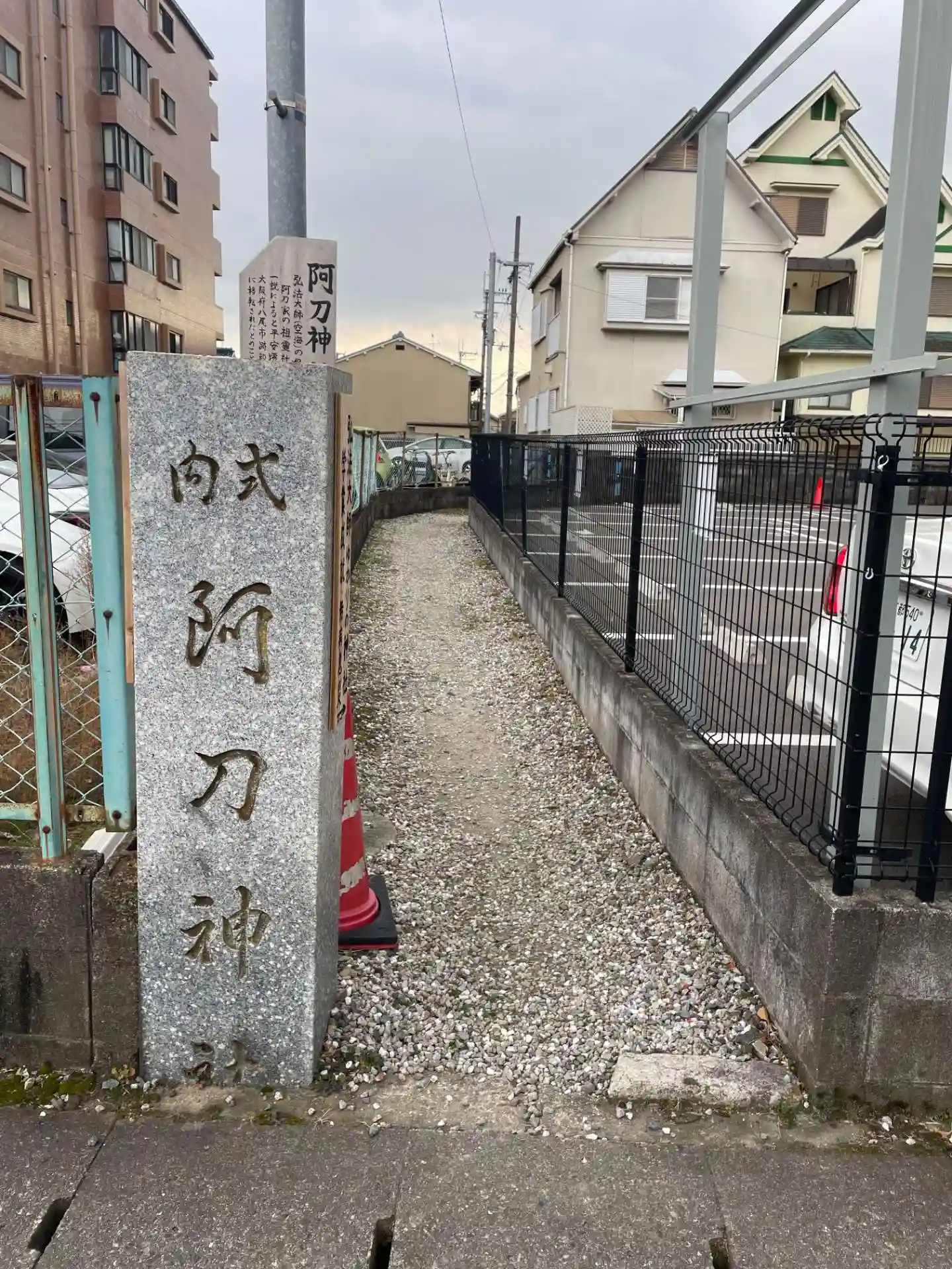 ホテルの駐車場と別の駐車場の間に 阿刀神社の参道入口がありました。