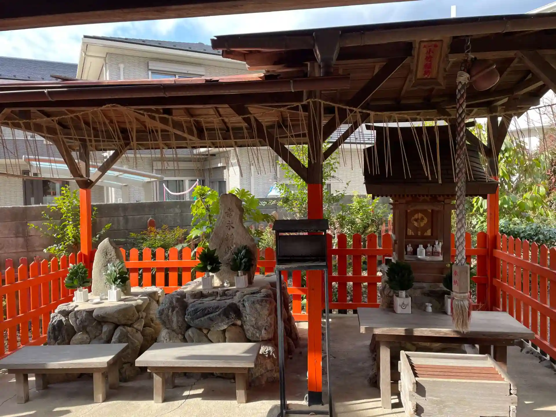 幼稚園と民家の間に鳥居がいくつも並んでいました。