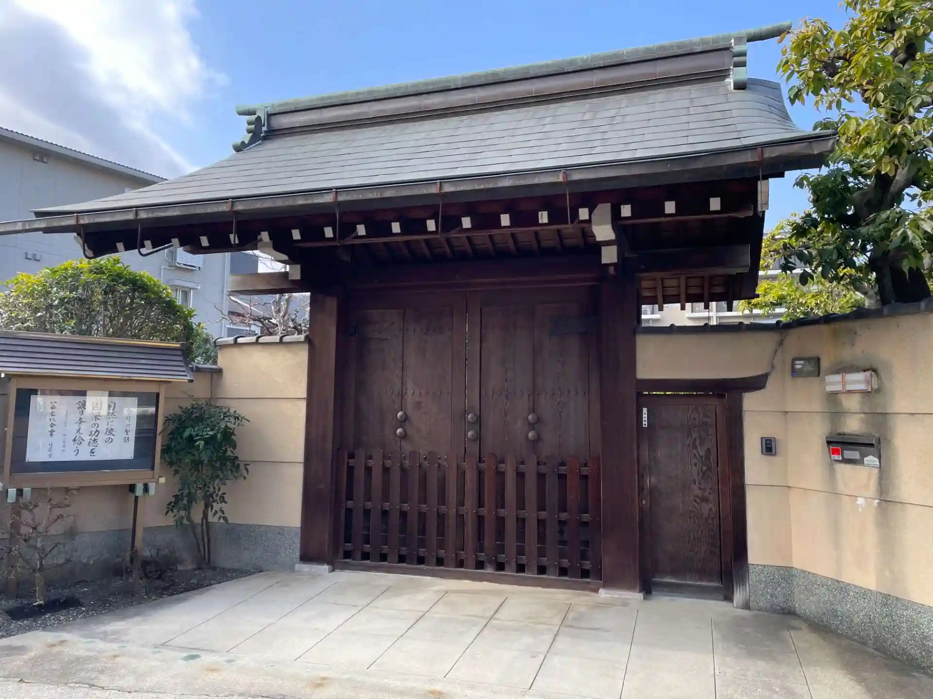 残念ながら山門が閉じられていて 背伸びしても境内の様子は分かりませんでした。