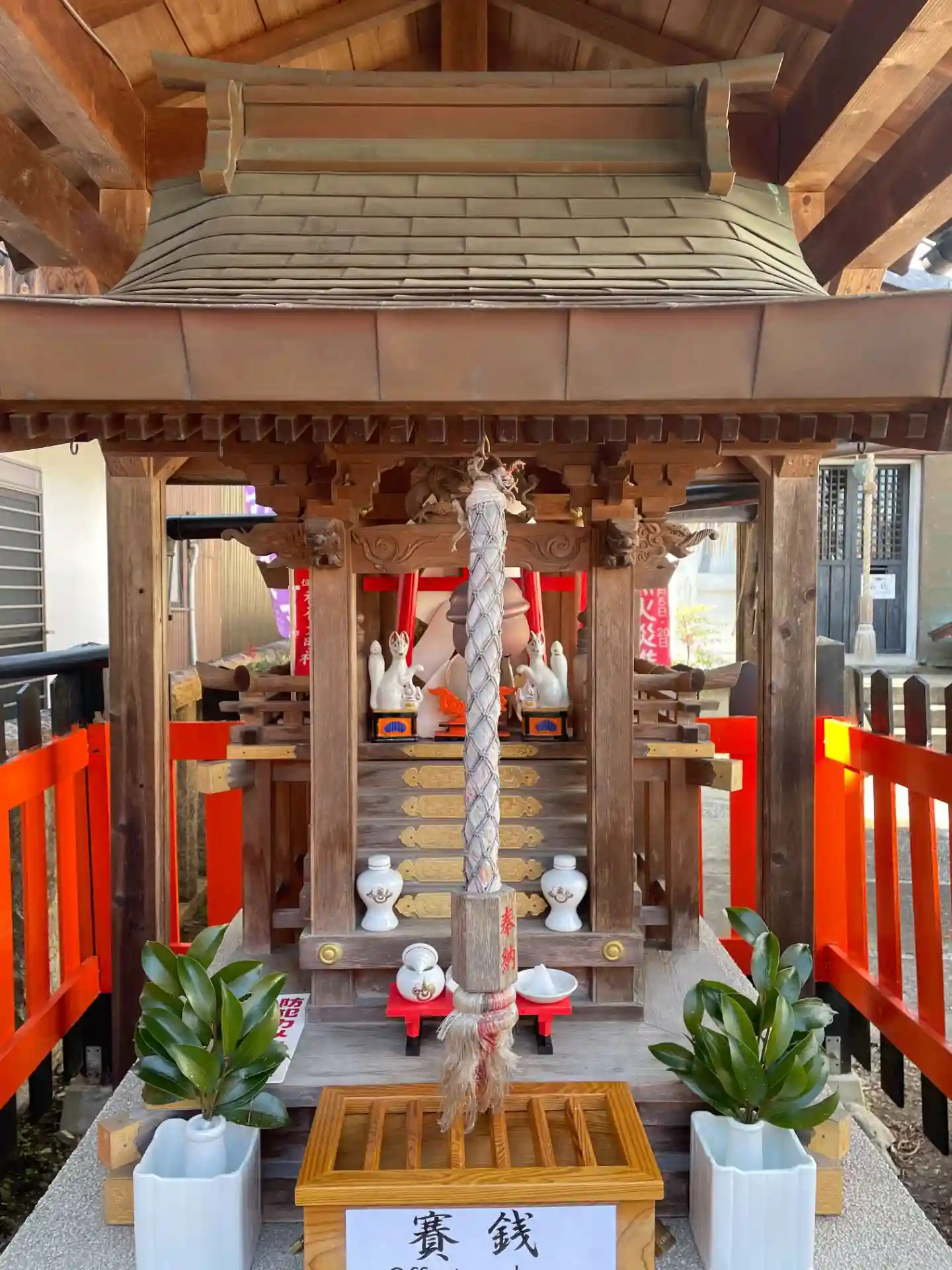 お賽銭箱はほとんど新品。