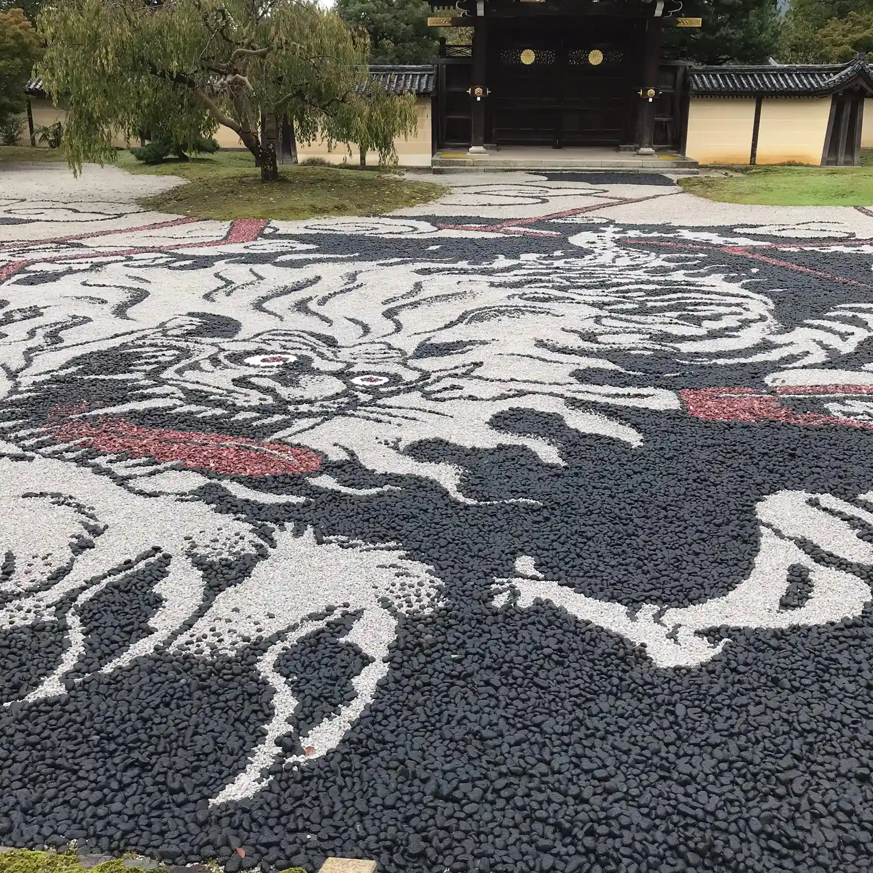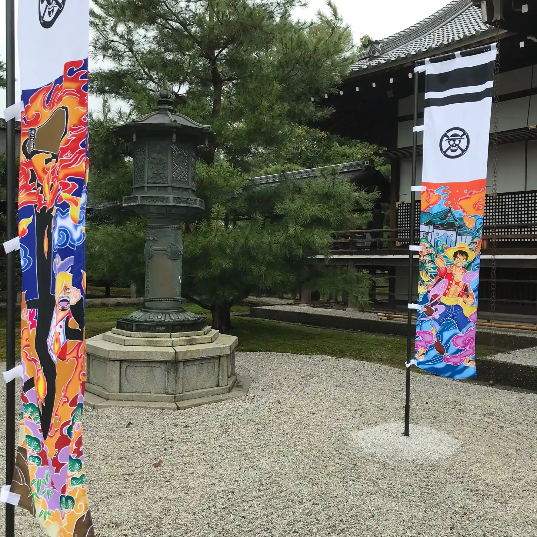 たまたまちょうど連載20周年を迎えた尾田栄一郎原作の人気作品『ONE PIECE』が、日本画とコラボレーション。参拝当日の10月7日から企画展『ONE PIECE ART NUE 大覚寺「魔獣と姫と誓いの花」展』が開催されていて、いつになく大行列。