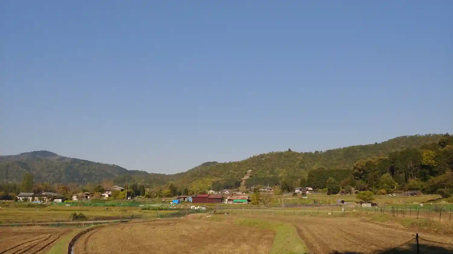 竹林と田園ののどかな奥嵯峨の風景。