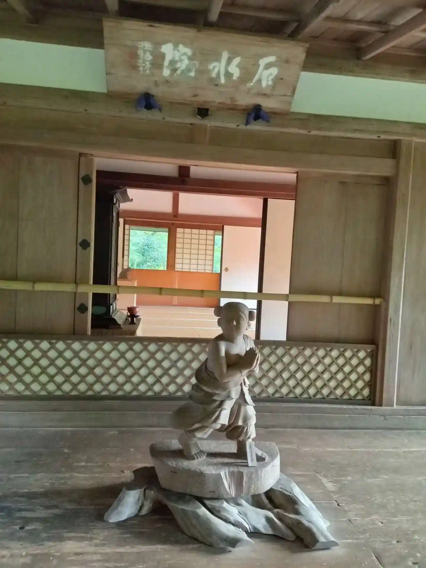 写真では数え切れない程見ましたが、実際は数倍も素敵です。"愛らしい表情"が何とも言えません。広い空間にポツリ···。でも存在感格別。安倍文殊院さんの善財童子も頭に浮かびました。😆