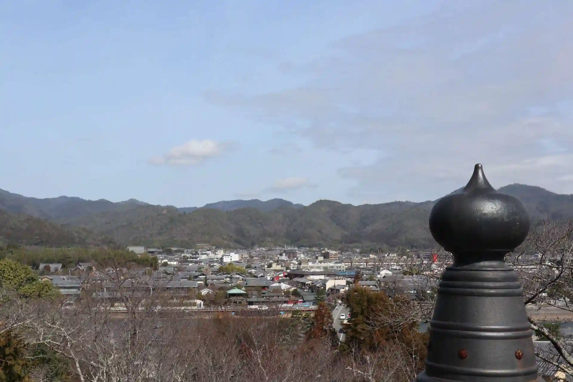 嵐山の大堰川に架かる渡月橋は、法輪寺の道昌が川を修築した折に掛けたのが始まりとされ、江戸時代までは法輪寺橋と呼ばれていました。境内右手にある見晴台からは、その渡月橋をはじめ嵯峨野が一望できます。