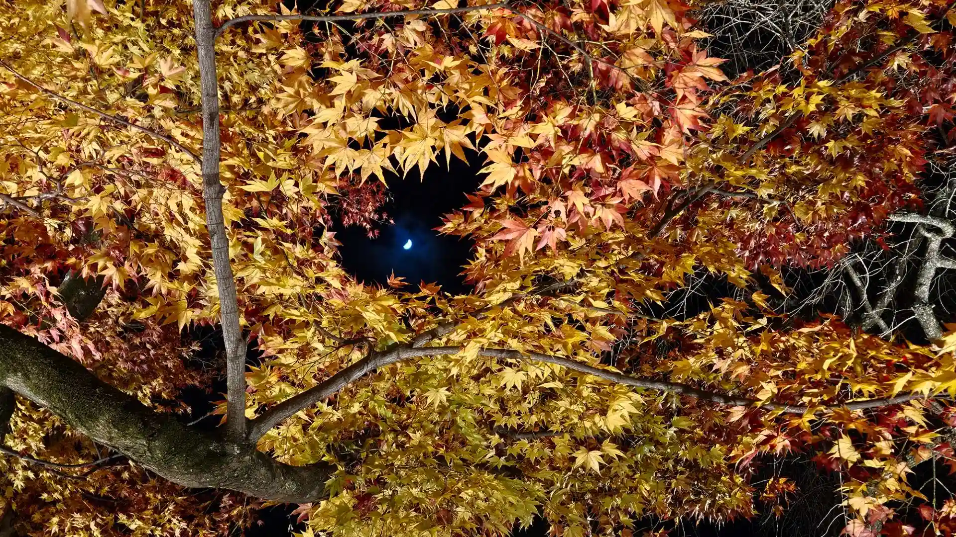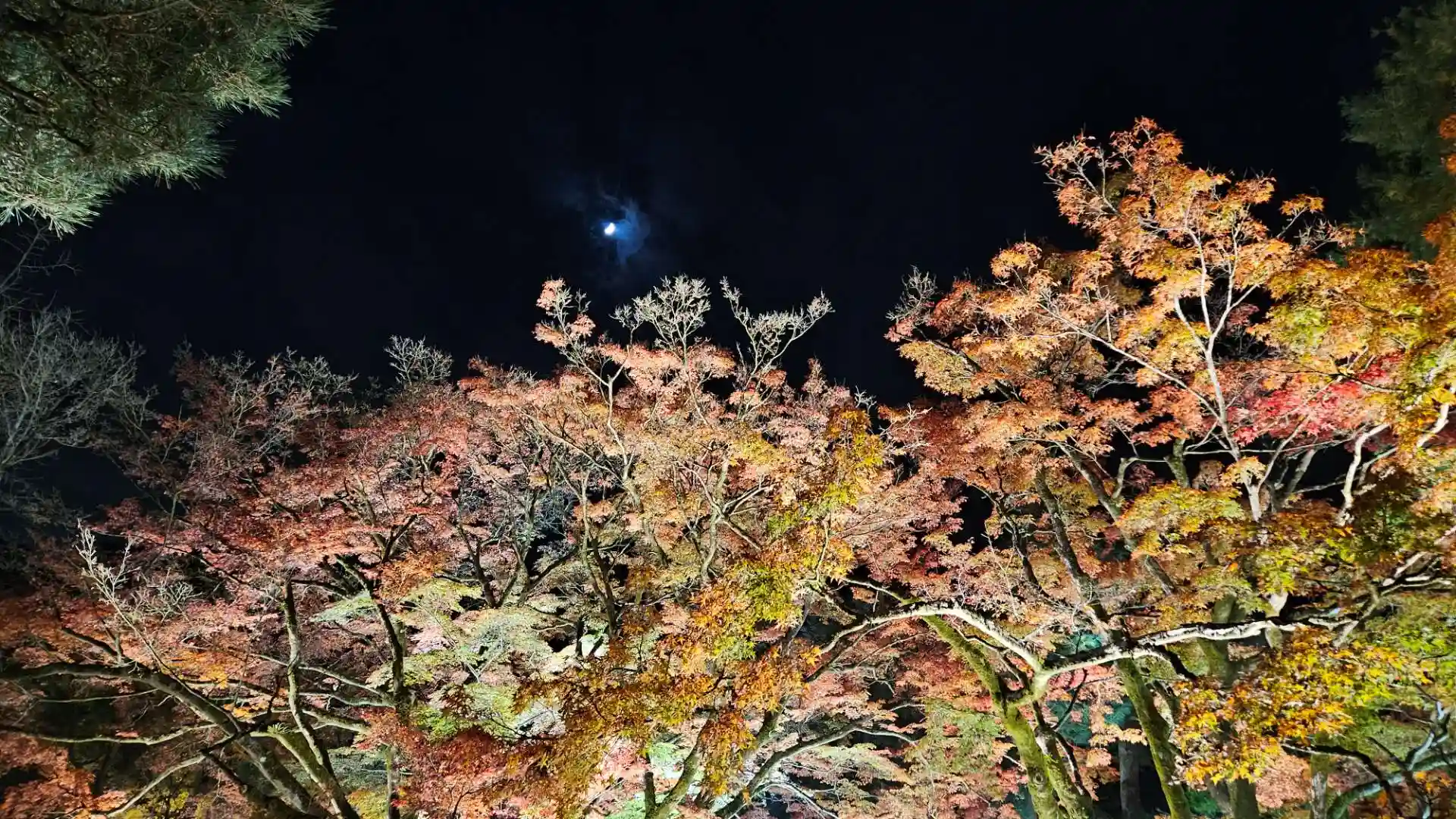 紅葉の間から月も見え、ベンチに座ってまったりさせていただきました。