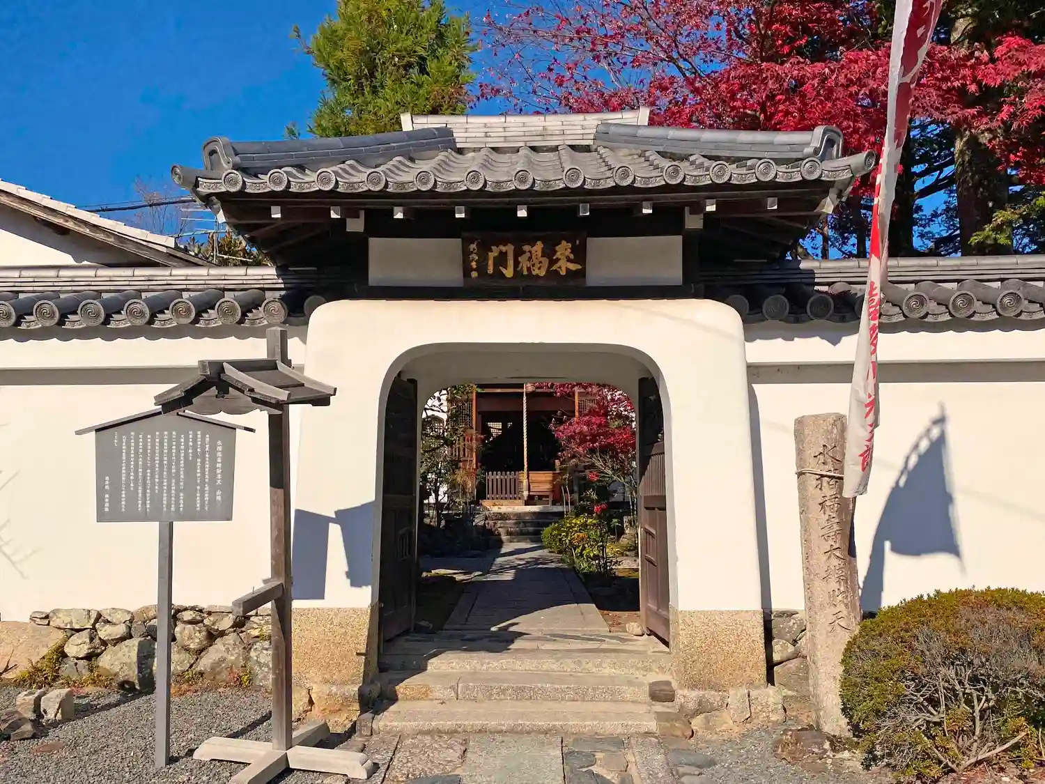 つづいて<弘源寺>。石柱には<三國傳來 毘沙門天>とある。秋の特別拝観をやっている。