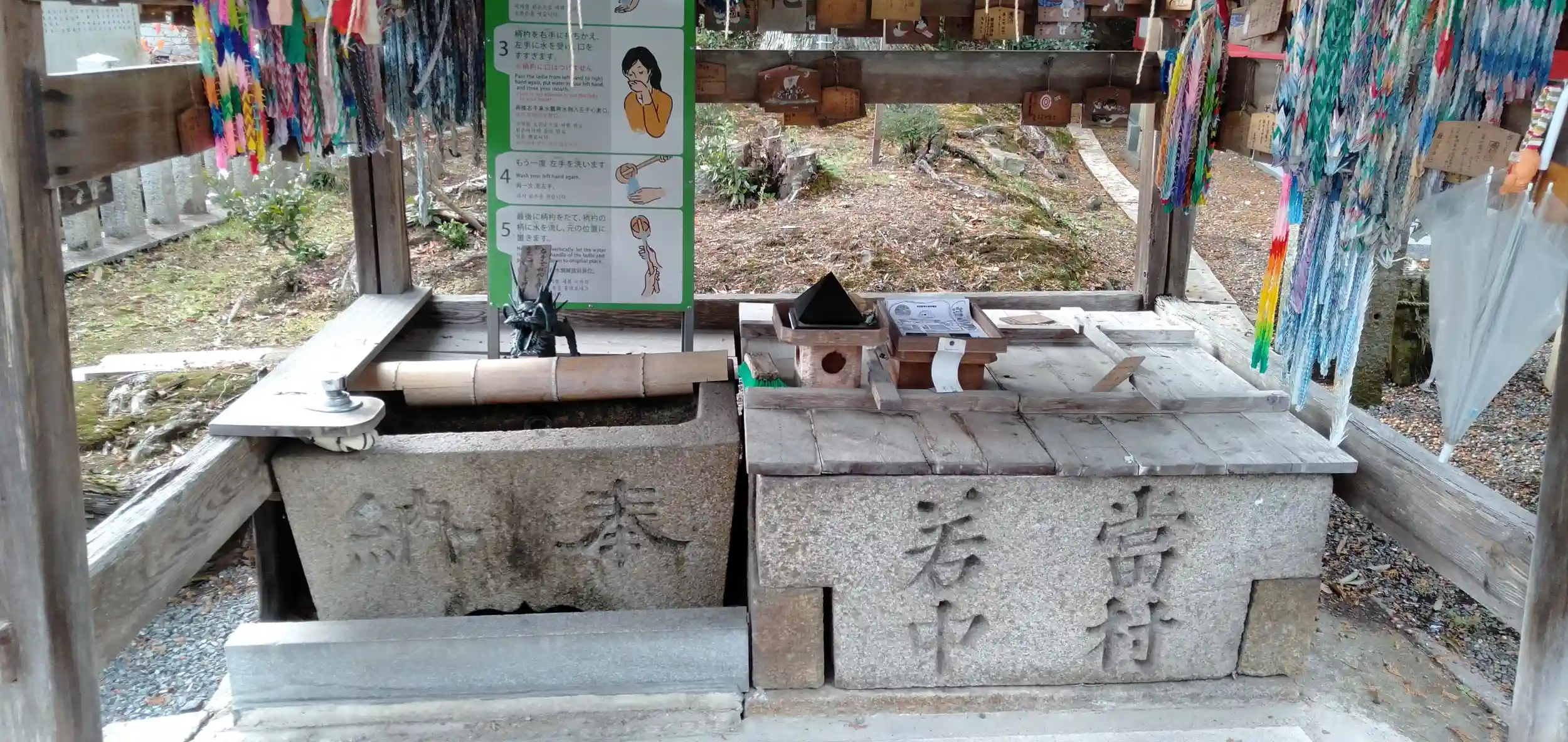 参拝後、舞殿の両脇の「清めの真砂」を持ち帰って玄関に祀ると、こちらも癌封じ・悪病退散の御利益がありますよ。