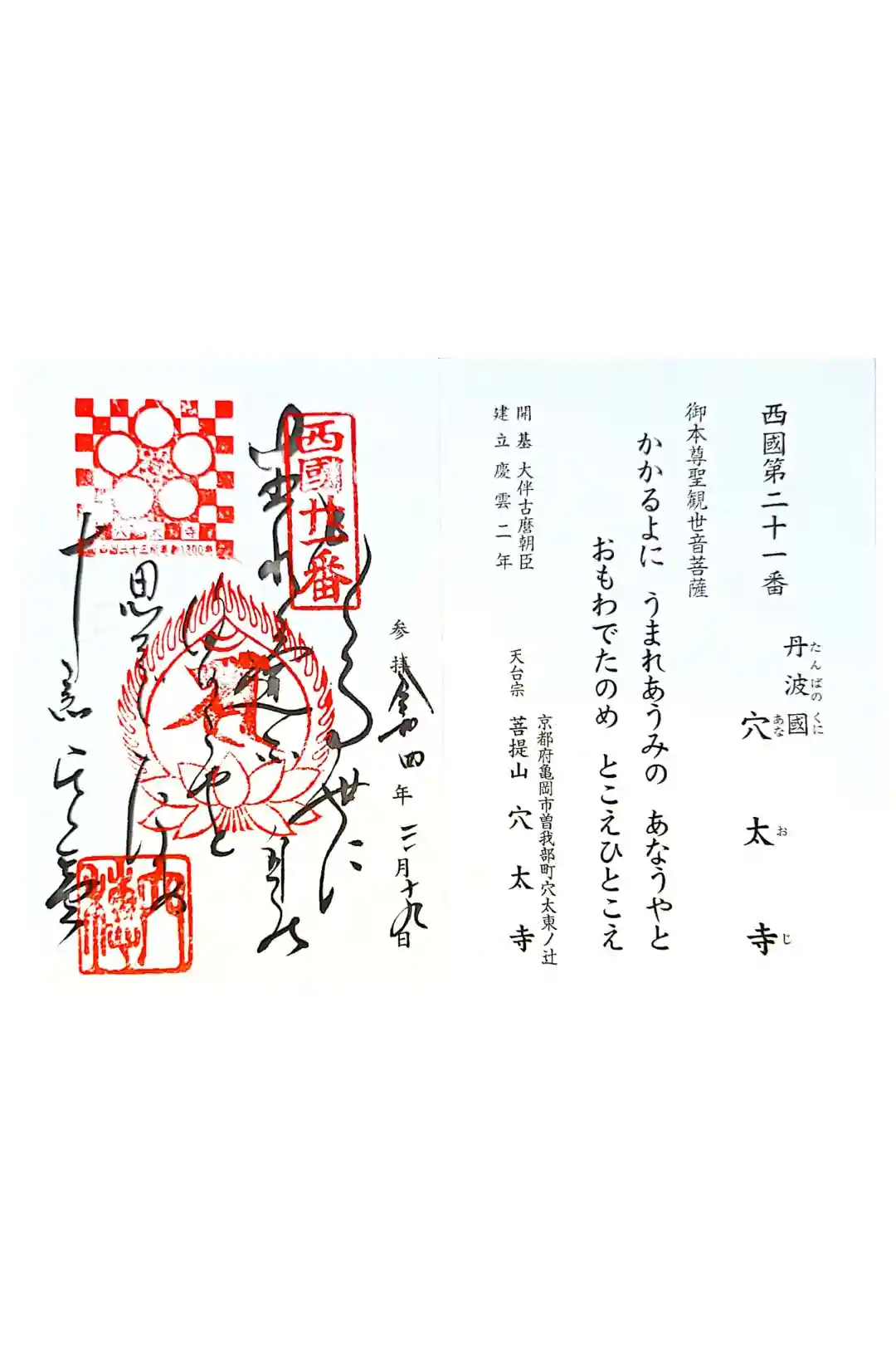 西国三十三所観音霊場第二十一番の御朱印