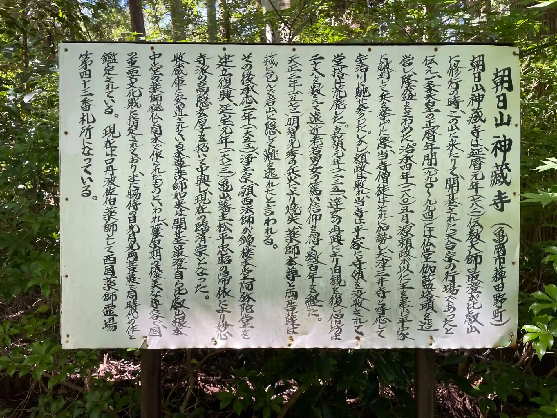 創建は延暦元年(782)比叡山延暦寺の伝教師最澄が当地で修行していた際 神々しい程の紫雲が棚引いた為 当地を霊地と悟り 自ら薬師如来像を彫り込み安置したのが始まりと伝えられています。