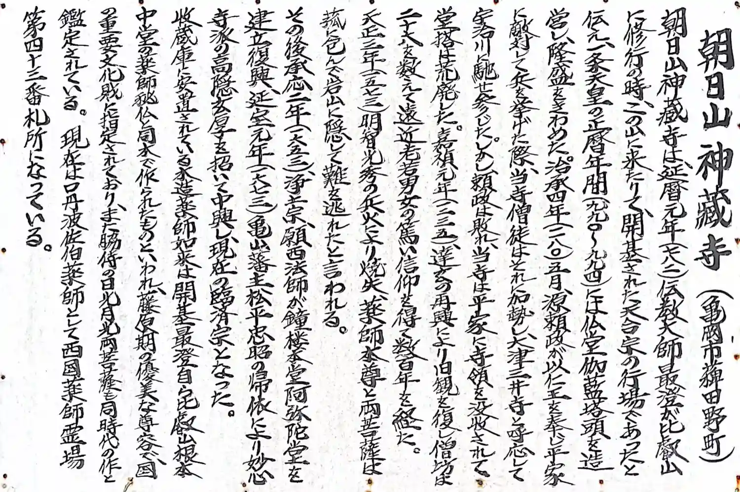 西国薬師四十九霊場四十三番霊場神蔵寺です。