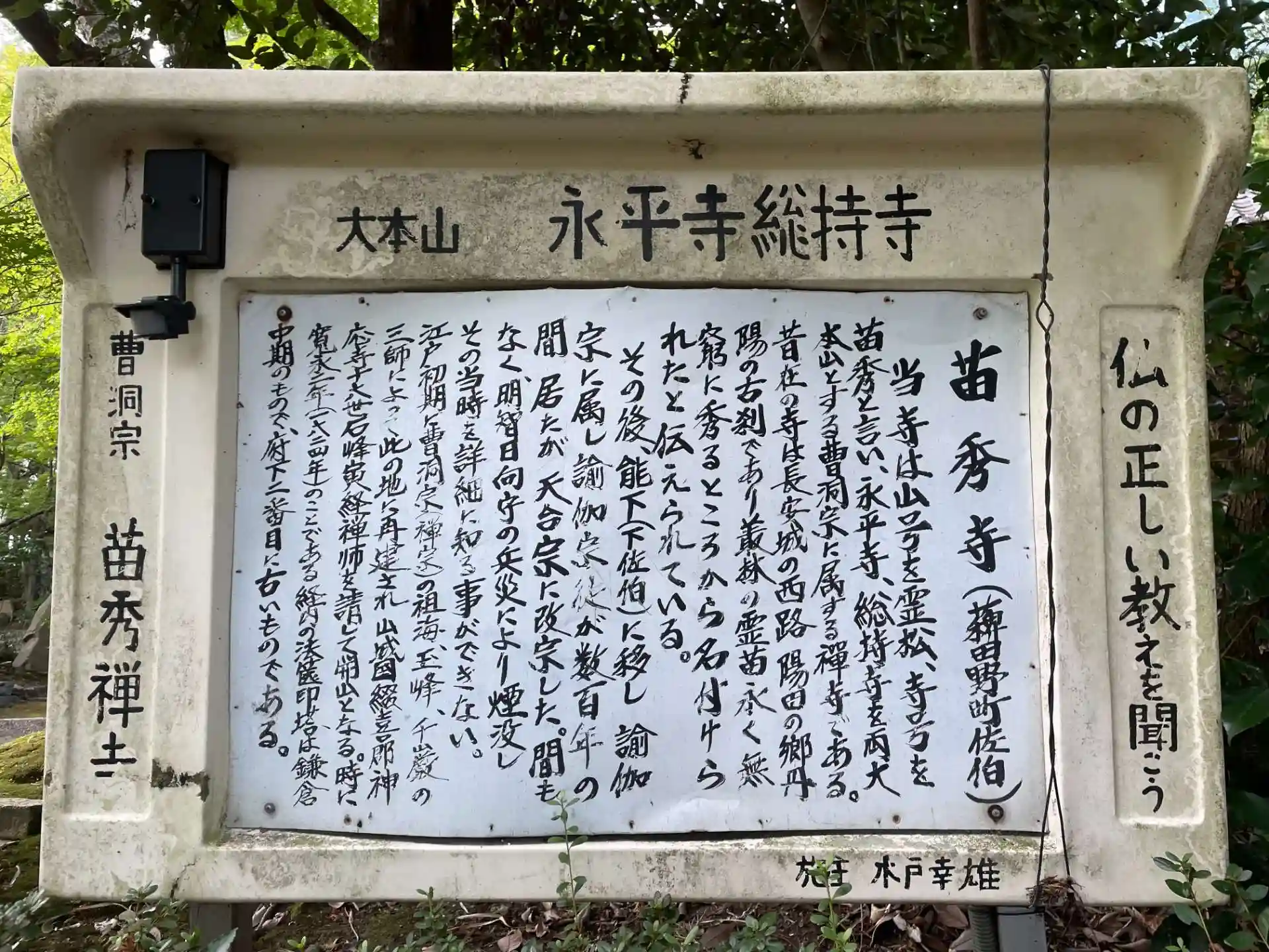苗秀寺の寺号は「叢林(そうりん)の霊苗永く無窮に秀る」から名付けられたと言われています。
