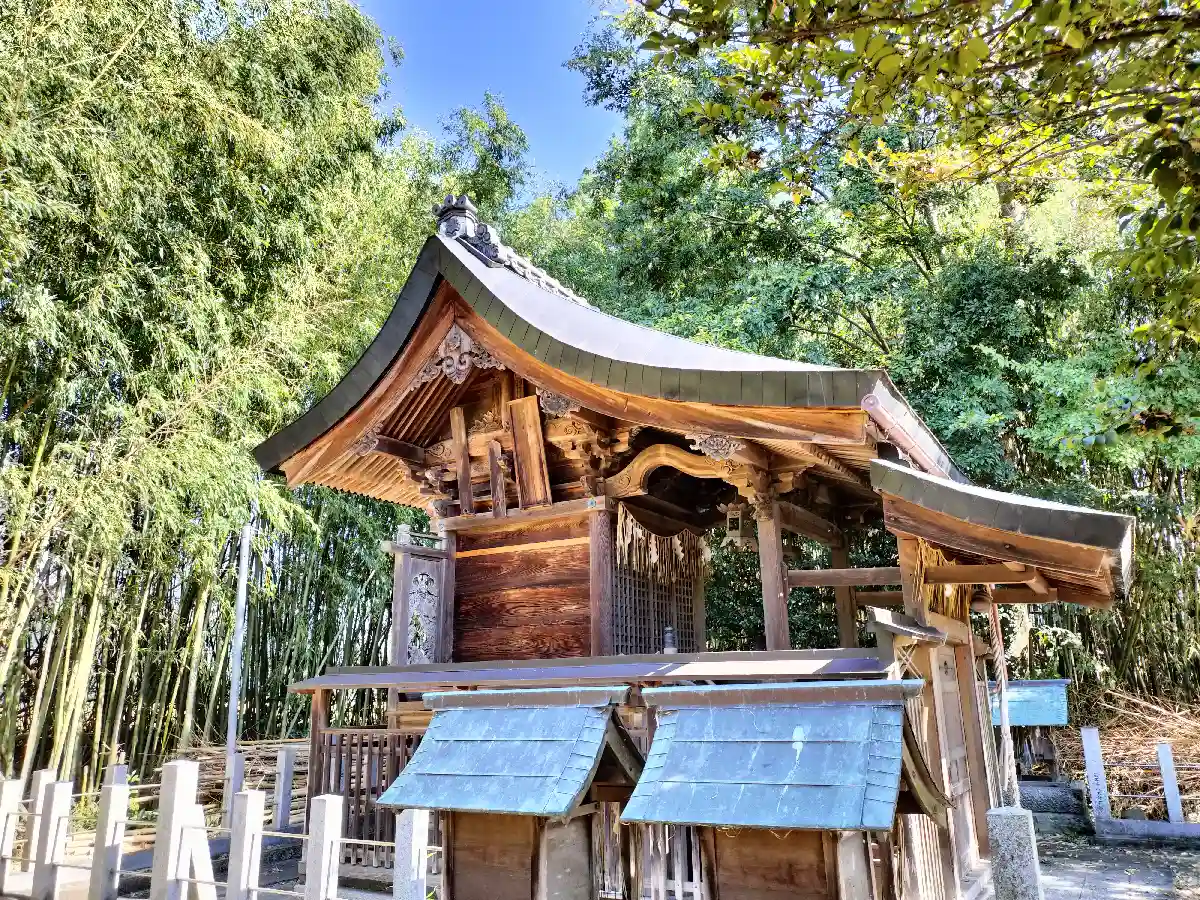 本殿は流造、左右に末社4つあります。