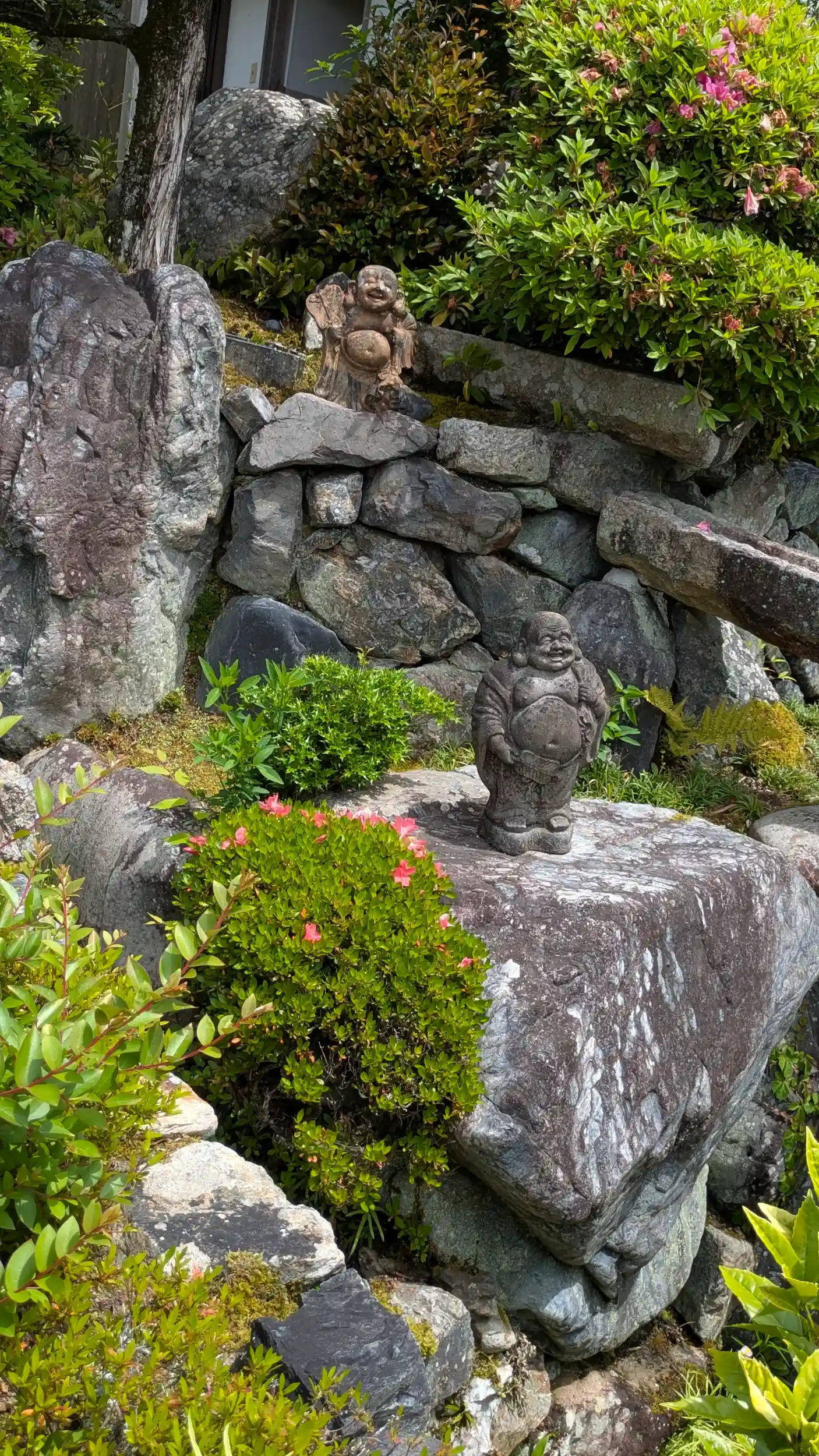 丹波七福神第2番・布袋尊。山門前から布袋さん祭😂大阪でタヌキがたくさんのお寺見ましたがスケールが違うなぁ・・・そういえばタヌキの焼き物と布袋さんってフォルムが似てる🤣布袋さん拝みながら本堂前へ。ぜひとも将軍地蔵様拝みたいなぁ思いながらも御縁は得られず。足利尊氏公の念持仏・・・ふと思ったのですがなぜ明智光秀公は愛宕山の愛宕神社まで登ったのでしょう?ここの将軍地蔵が元宮の愛宕神社にあったのなら武門としては足利尊氏公の念持仏に祈ると思うのですが・・・?まあ足利将軍家を滅ぼした片棒を担いでいた負い目からなのでしょうかね?