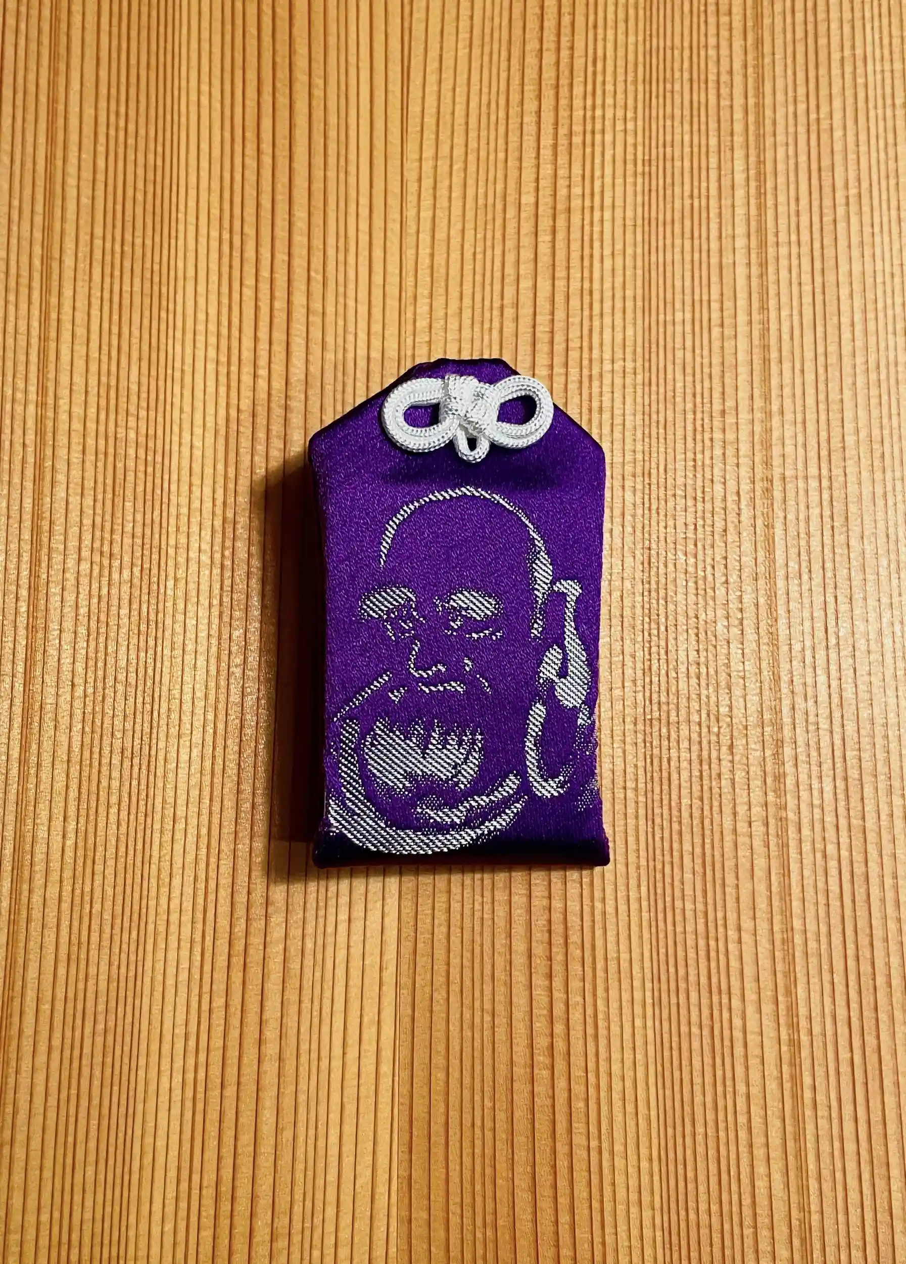 当寺に伝わる達磨図に因んで住職が書いた絵を元に縫製した御守。