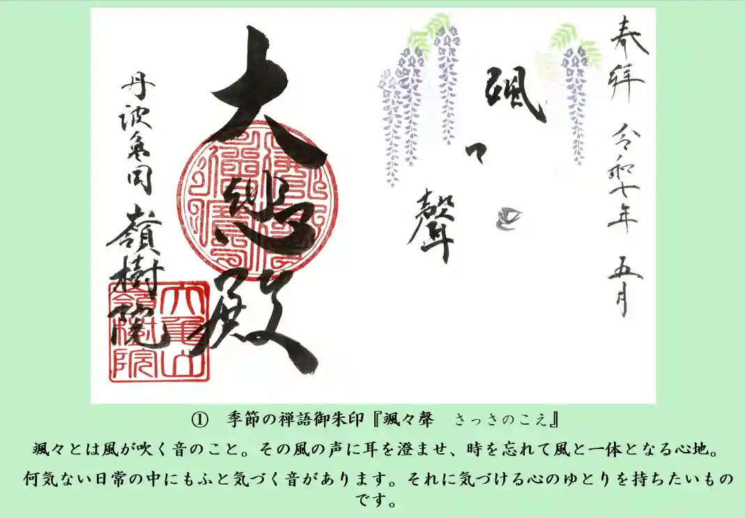 ① 季節の禅語御朱印『颯々聲 さっさのこえ 』