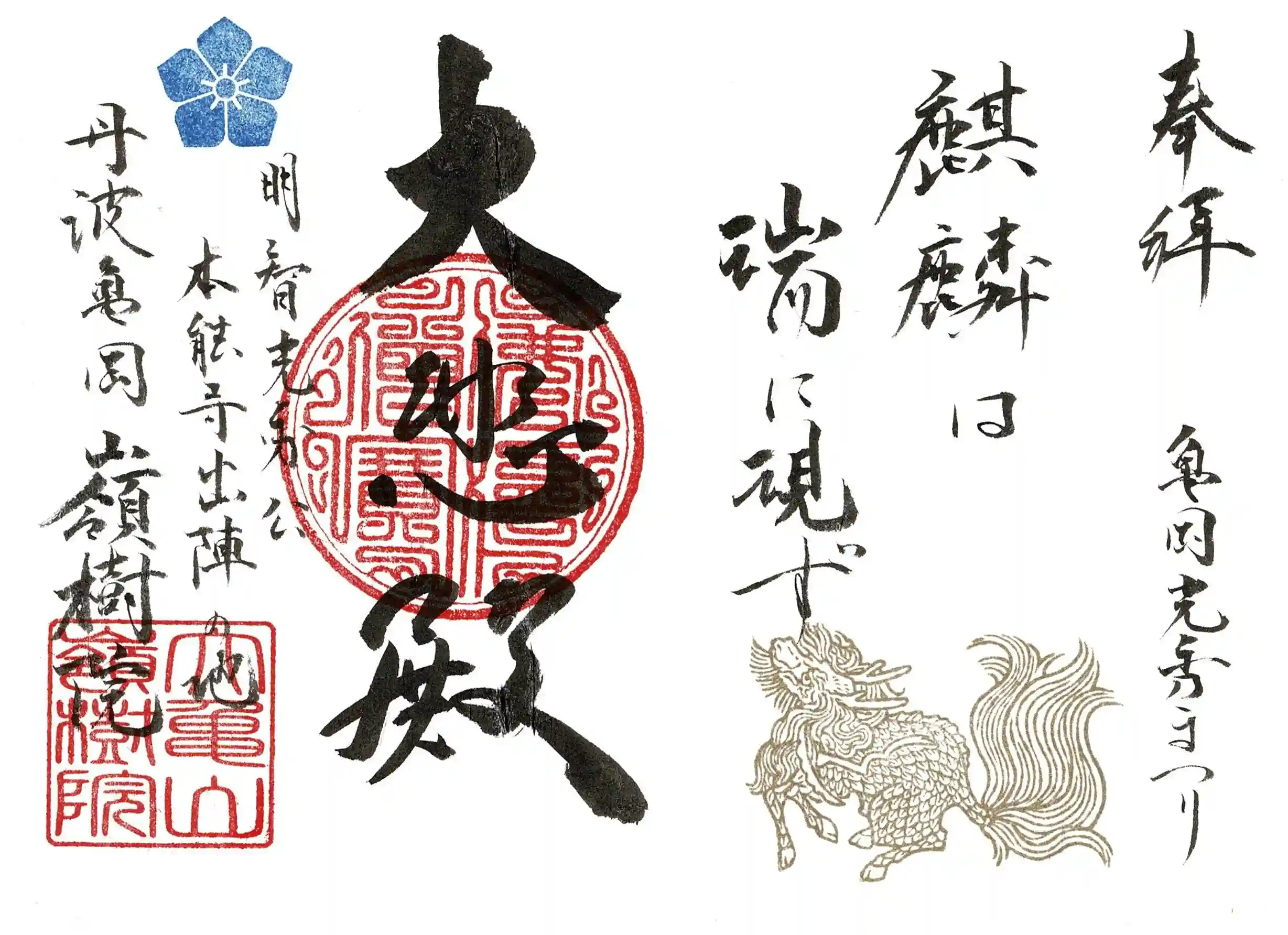 令和2年 NHK 大河ドラマ『麒麟がくる』にちなんだ御朱印です。