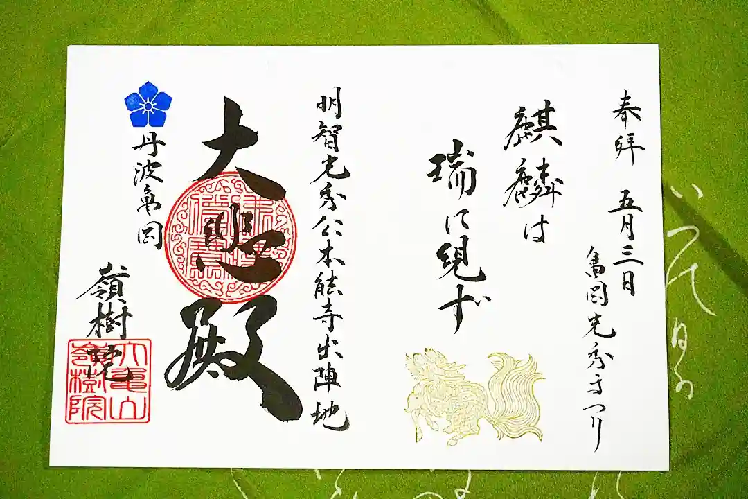 ③ 亀岡光秀まつり記念御朱印『麒麟は瑞に現ず きりんはずいにげんず 』