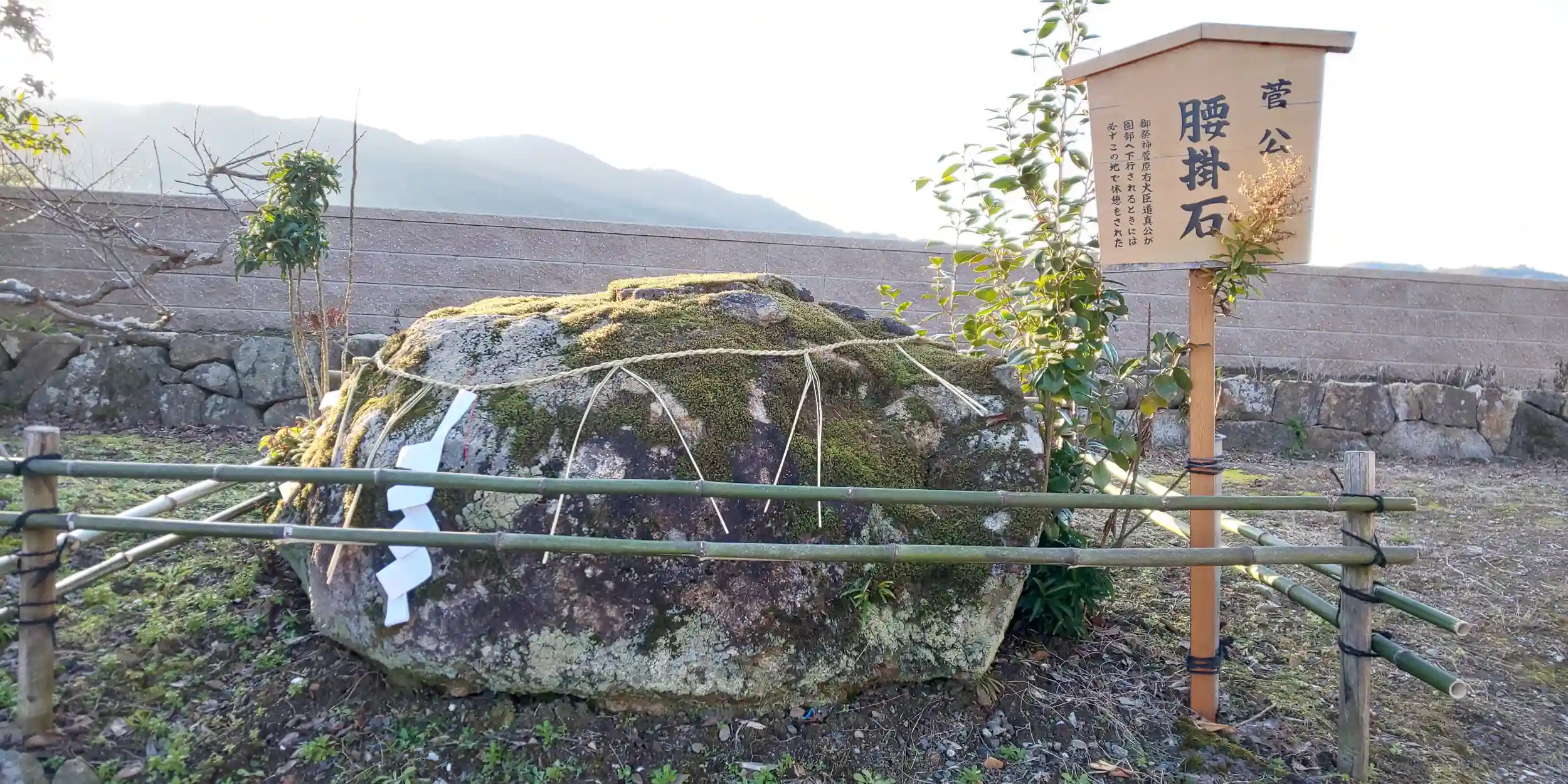 境内には「菅公腰掛岩」が今も存する。