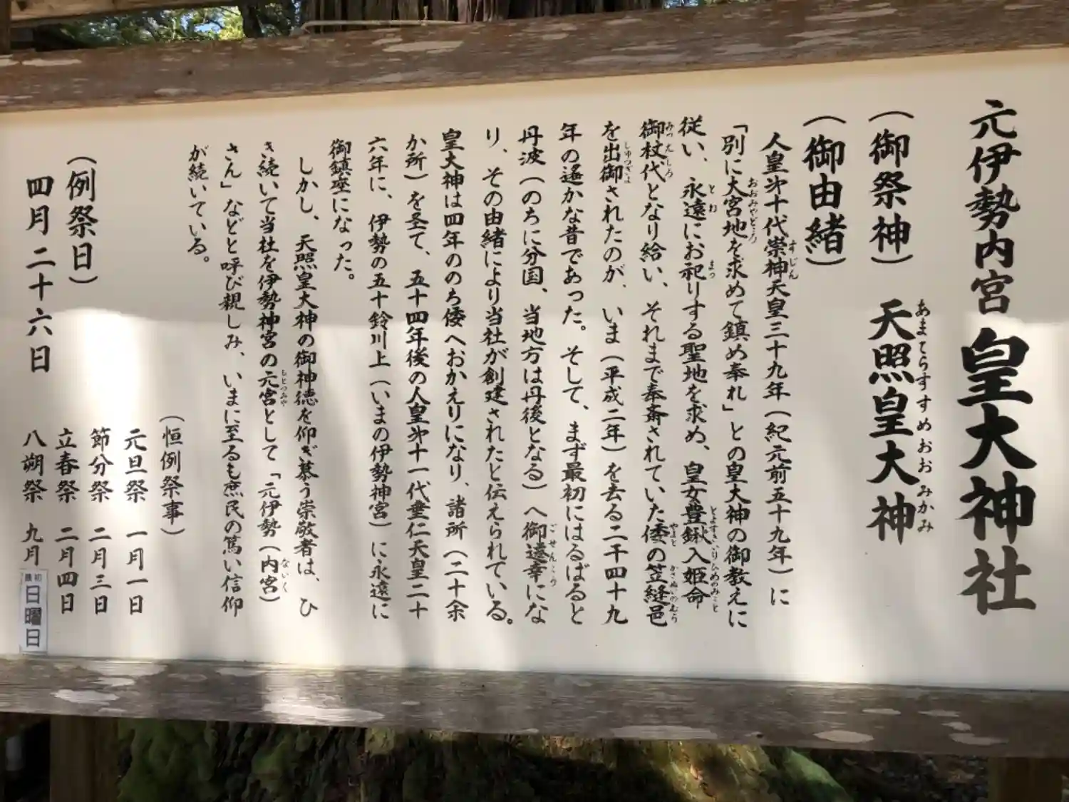 楽しみ方元伊勢内宮 皇大神社の御由緒・歴史