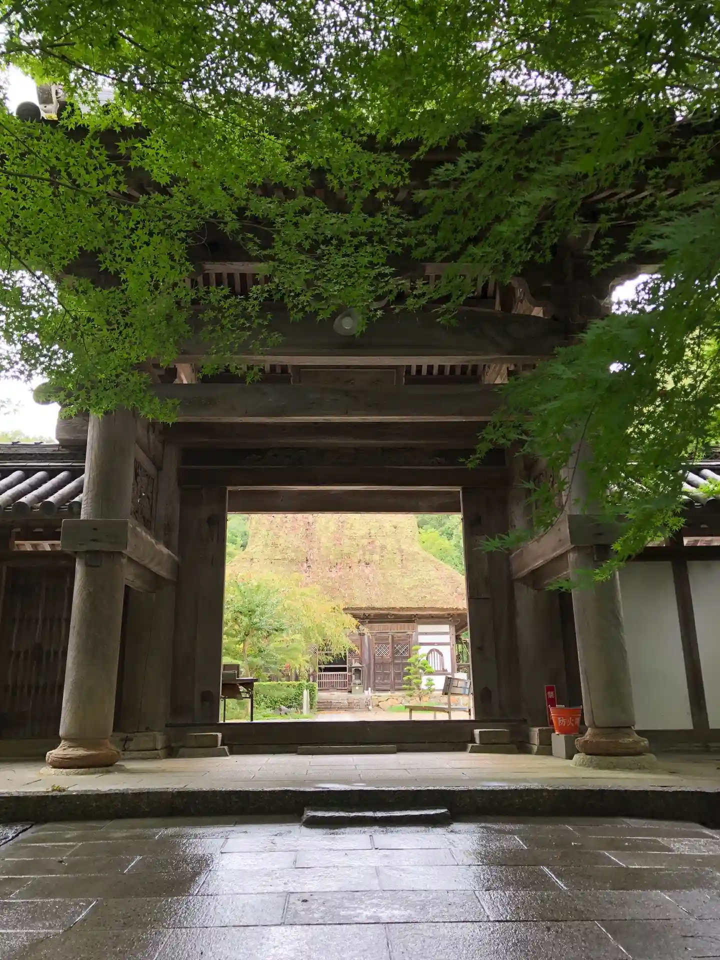 足利尊氏の生誕の地です。茅葺屋根の仏堂には釈迦三尊様がいらっしゃいました。境内は大きなもみじの木々に囲まれており、紅葉時の素晴らしさが容易に想像できます。