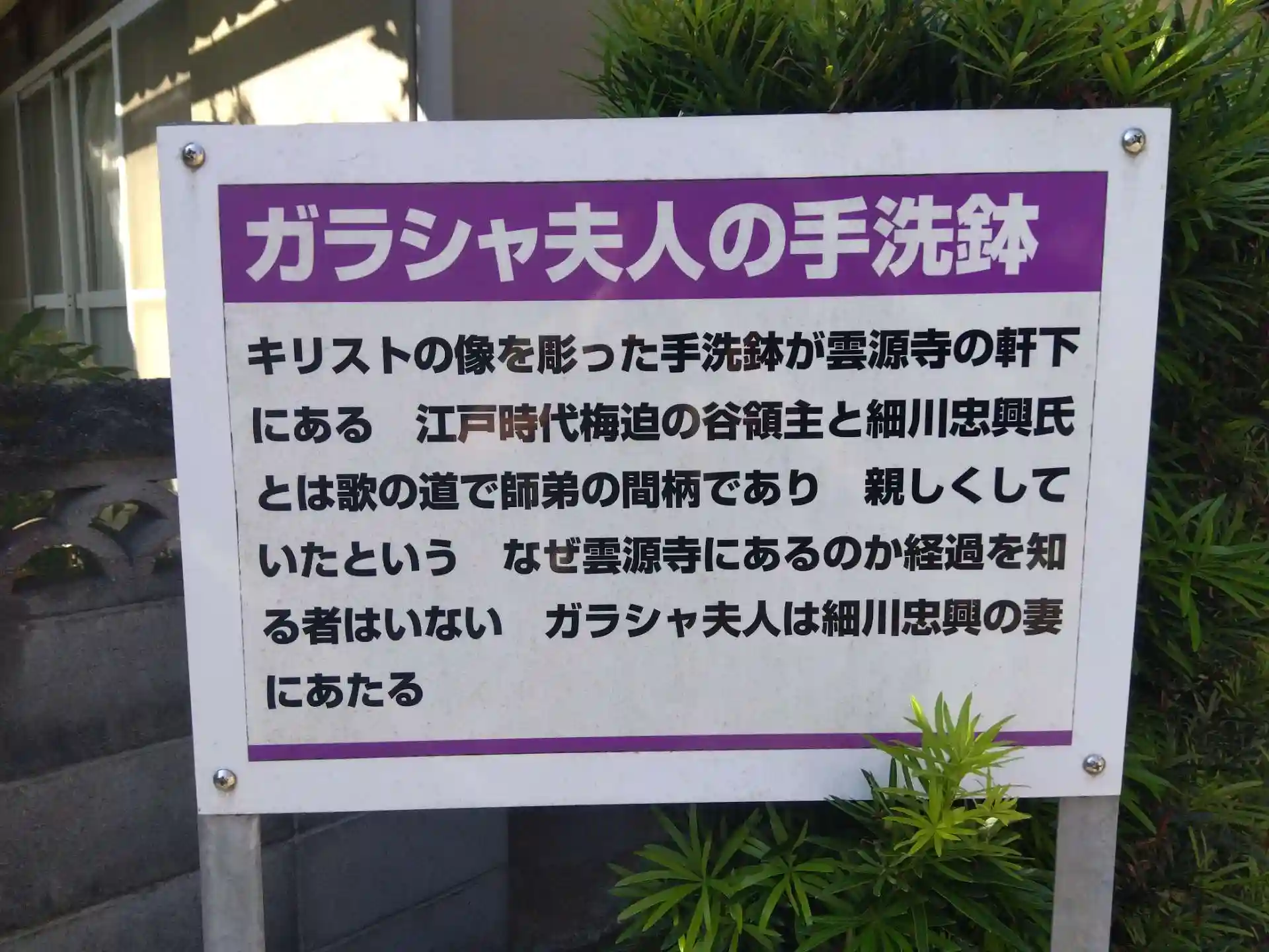 細川ガラシャの手洗鉢とされるものが軒下に🤔
