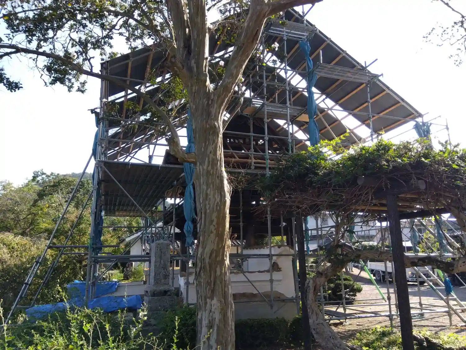 工事中の山門