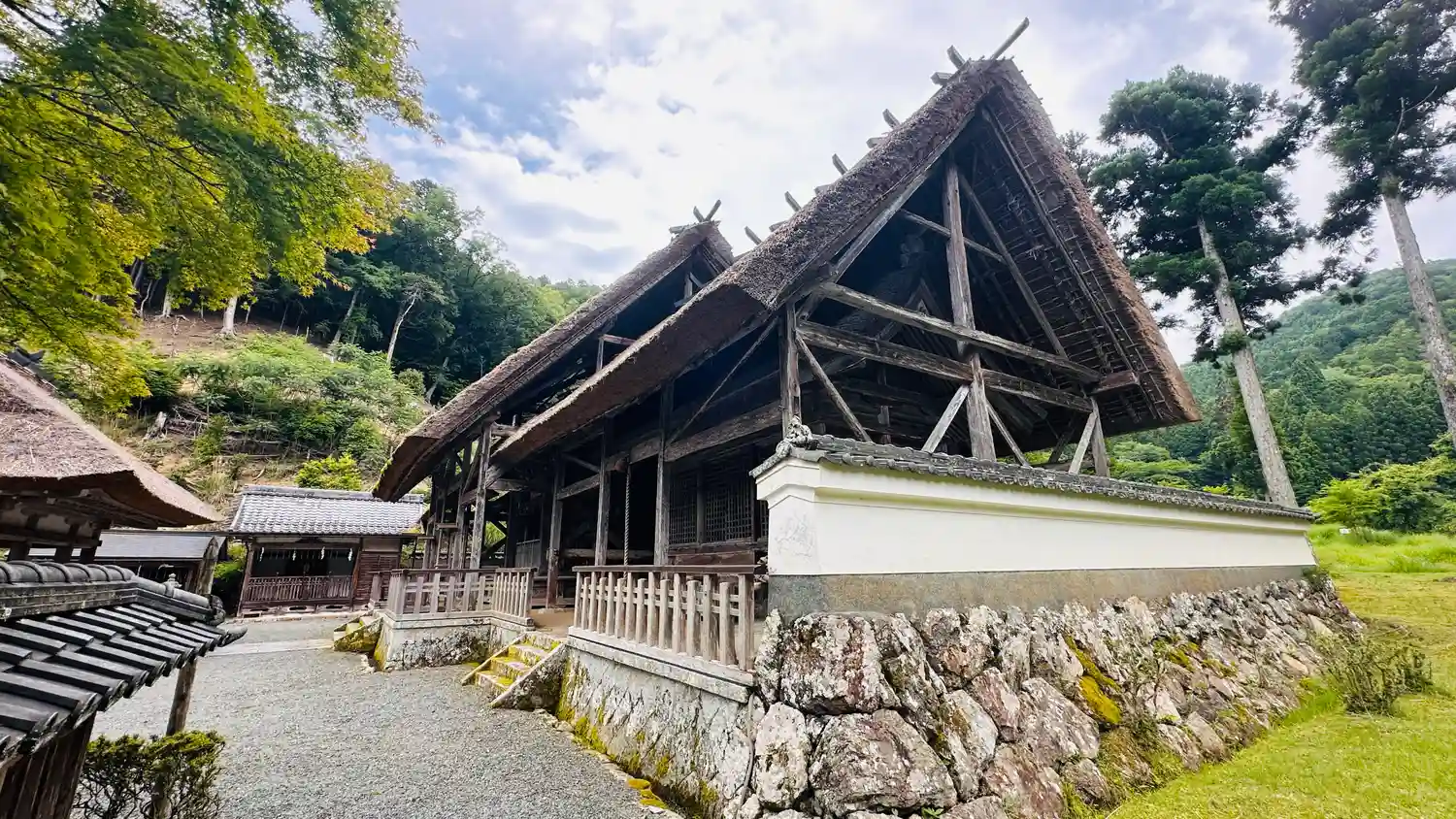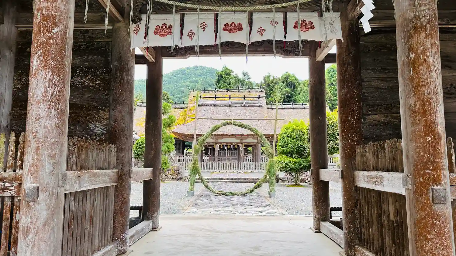 1079年に白河天皇が行幸したと伝えられています。拝殿の茅葺きは今年三月に葺き替えられたようです。…