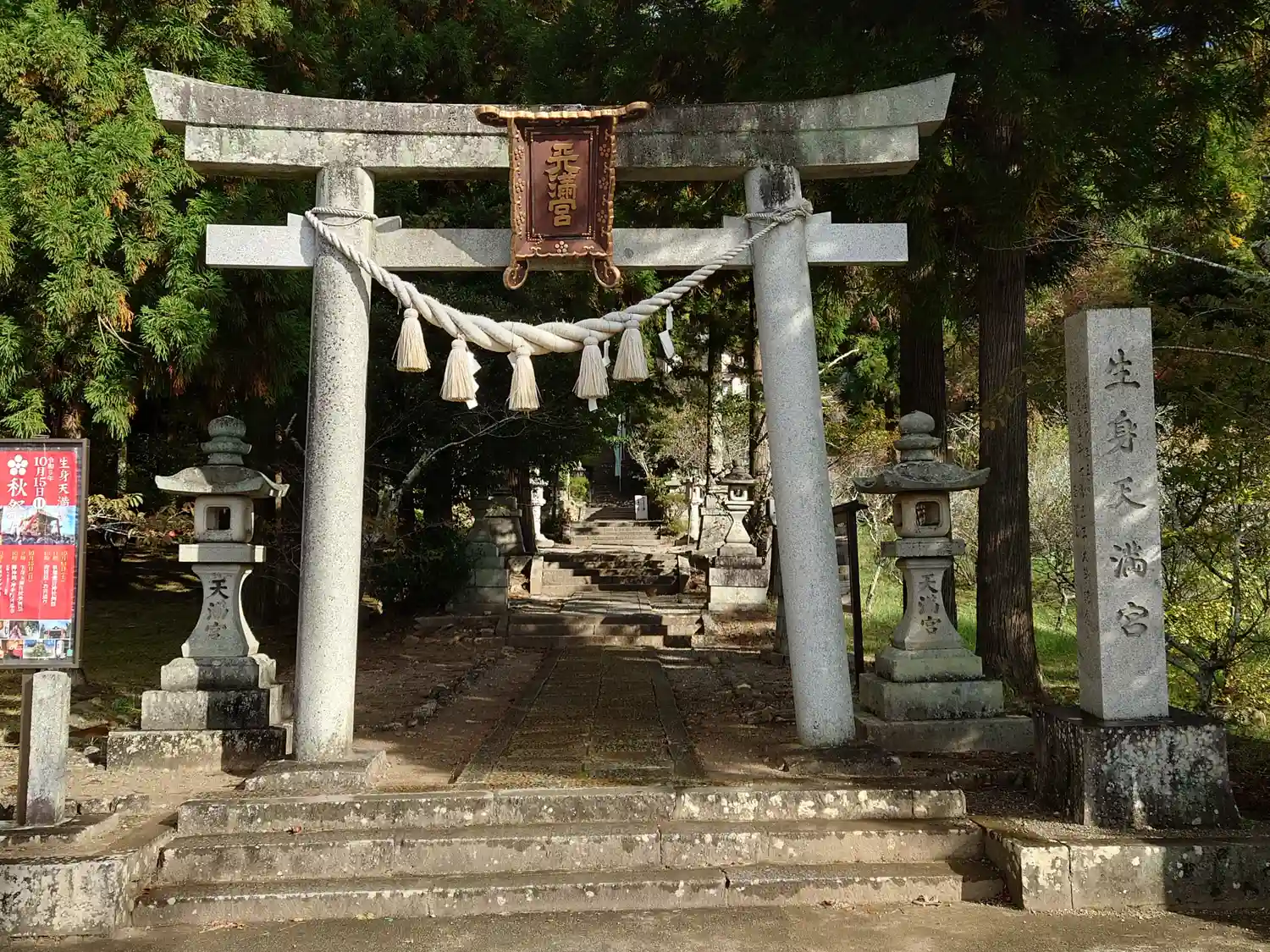 まずは生身天満宮。朝の気持ちよい中を参拝し…