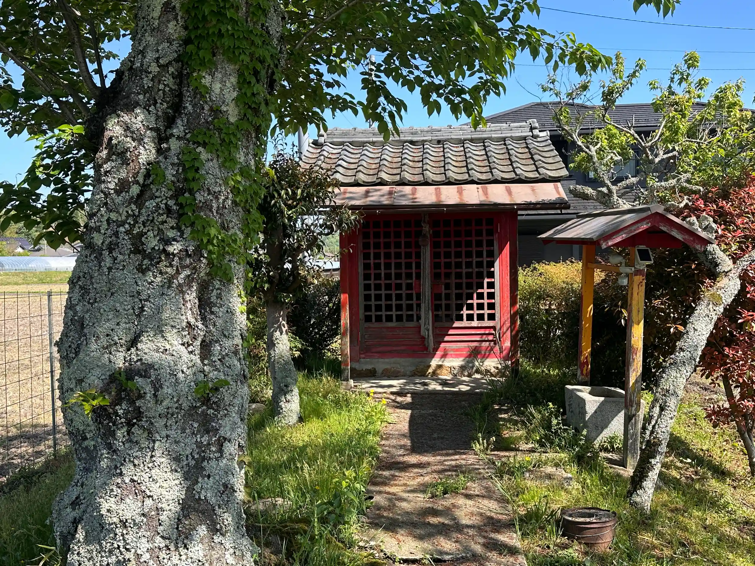 集落の端の田んぼの真ん中に鎮座されています、この日は集落の方々で掃除をされる直残に参拝させて頂きました、小さいながらも大切にされているようです