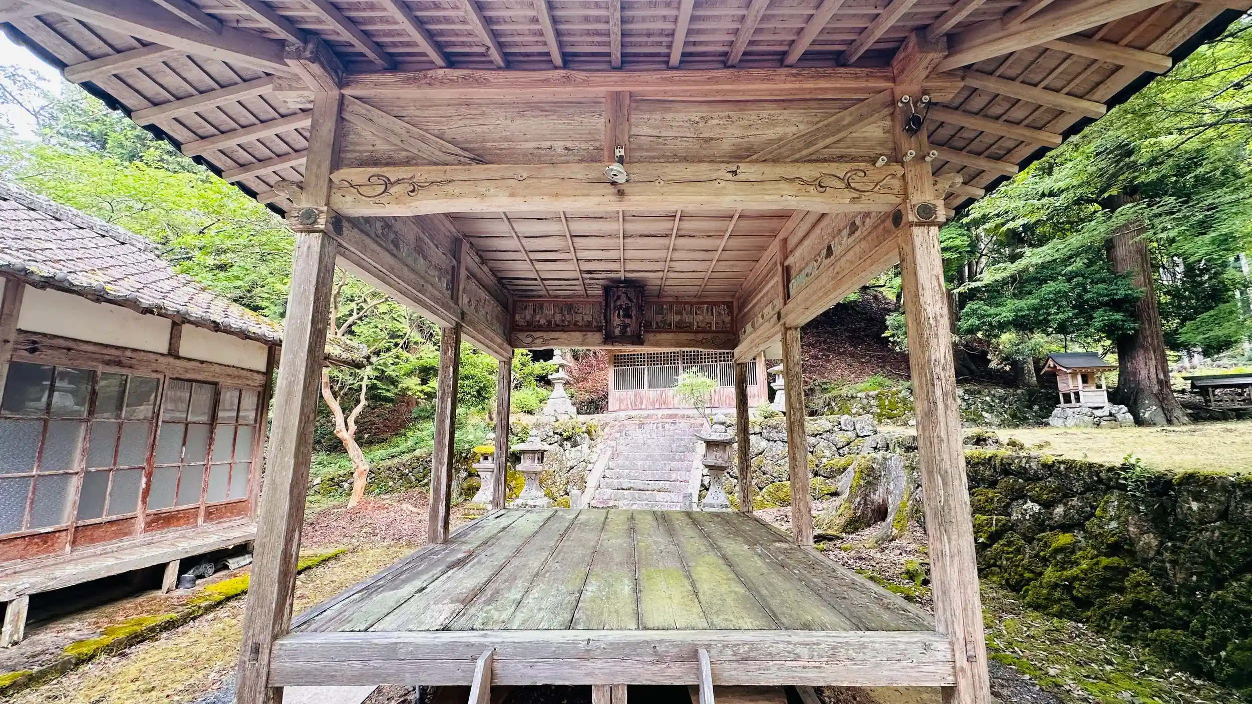 奉納の絵があり色褪せてはいますが、歴史を感じるものです。かつて中村の厄神さんとして知られた八幡神社より分霊したものですが、中村は日吉ダム建設により住民が亀岡市千代川町小林の日吉台に移転し、この時氏神様の八幡神社も遷座しました。