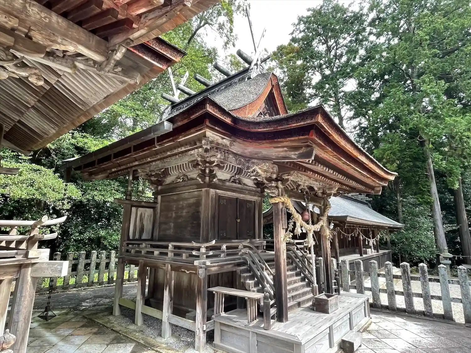 本殿、八幡・須賀社、祖霊殿は県の文化財に指定されています。春日造りの神殿が並ぶ景色は厳荘さを感じます。