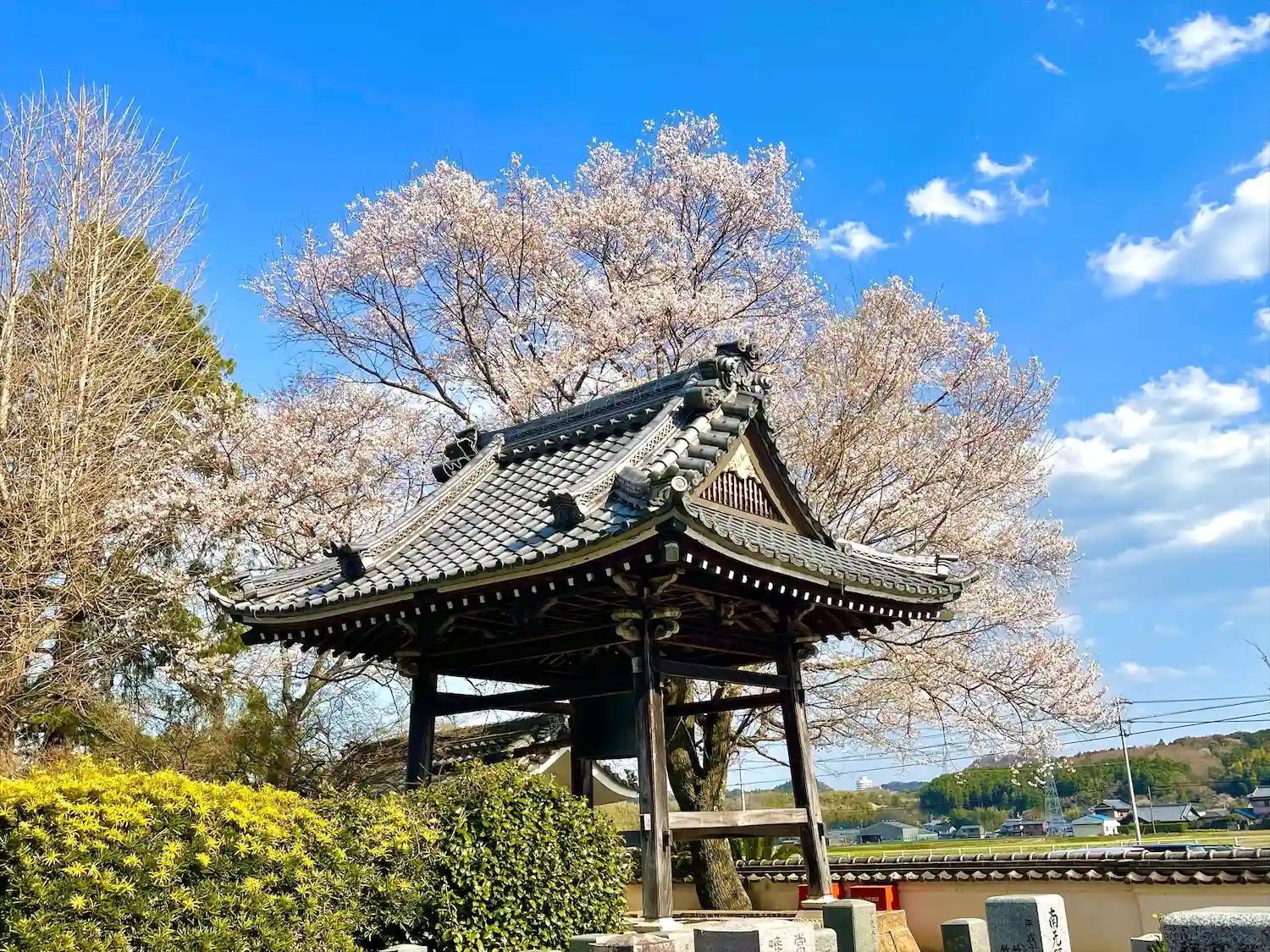 山門の両側にある薄墨桜が満開になったと聞き見に行ってきました。沢山の方が花見に来られていました。