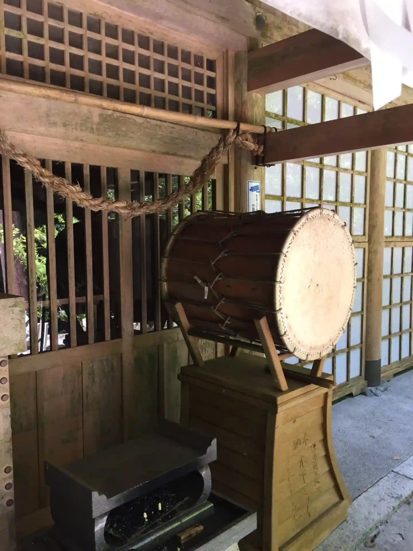 拝殿前には古い太鼓も