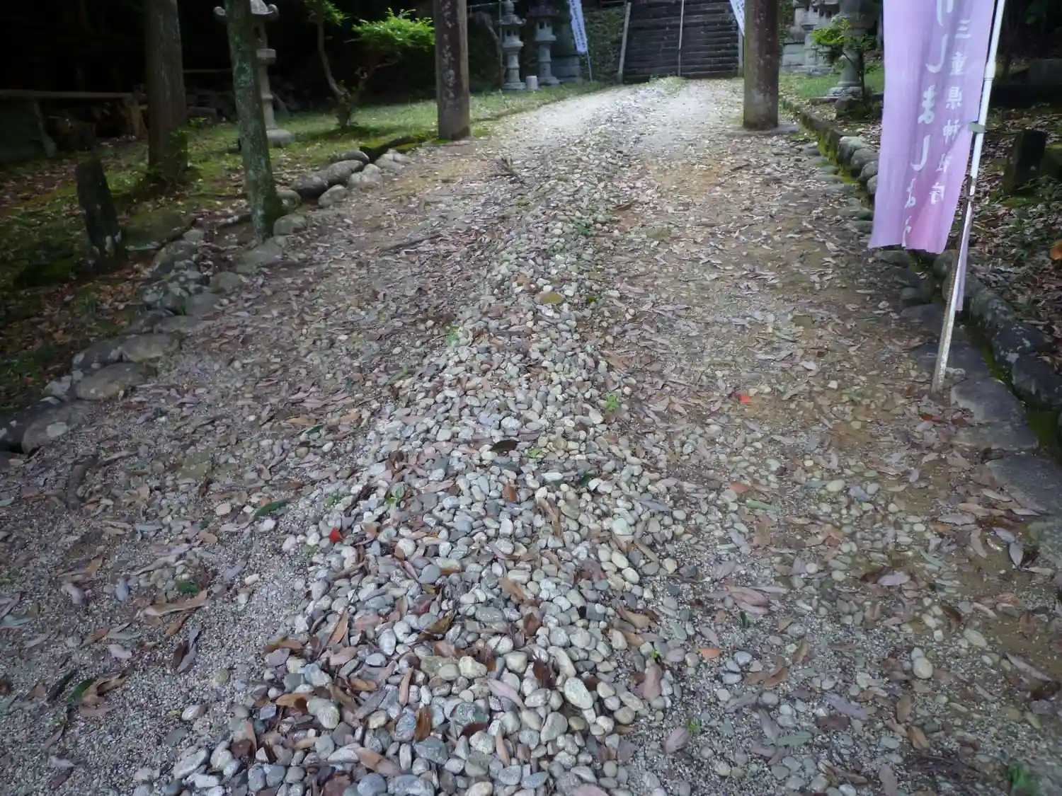 神様が通る参道の中央には小石が積まれています
