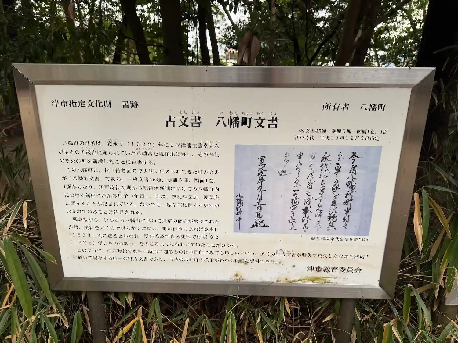 津八幡宮の由緒書