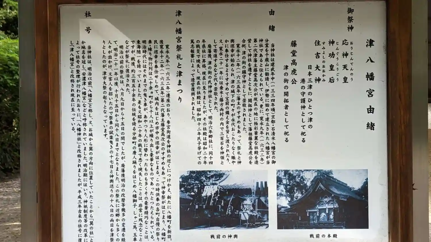 津藩主2代高次が1632年に津八幡宮を千歳山から現在地に移し、高虎の御霊を合祀して、社領300石を…