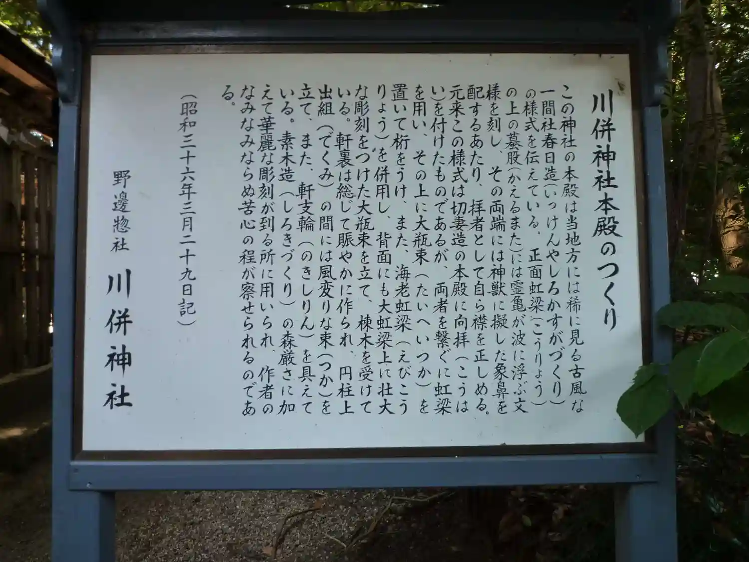 本殿のつくり説明板