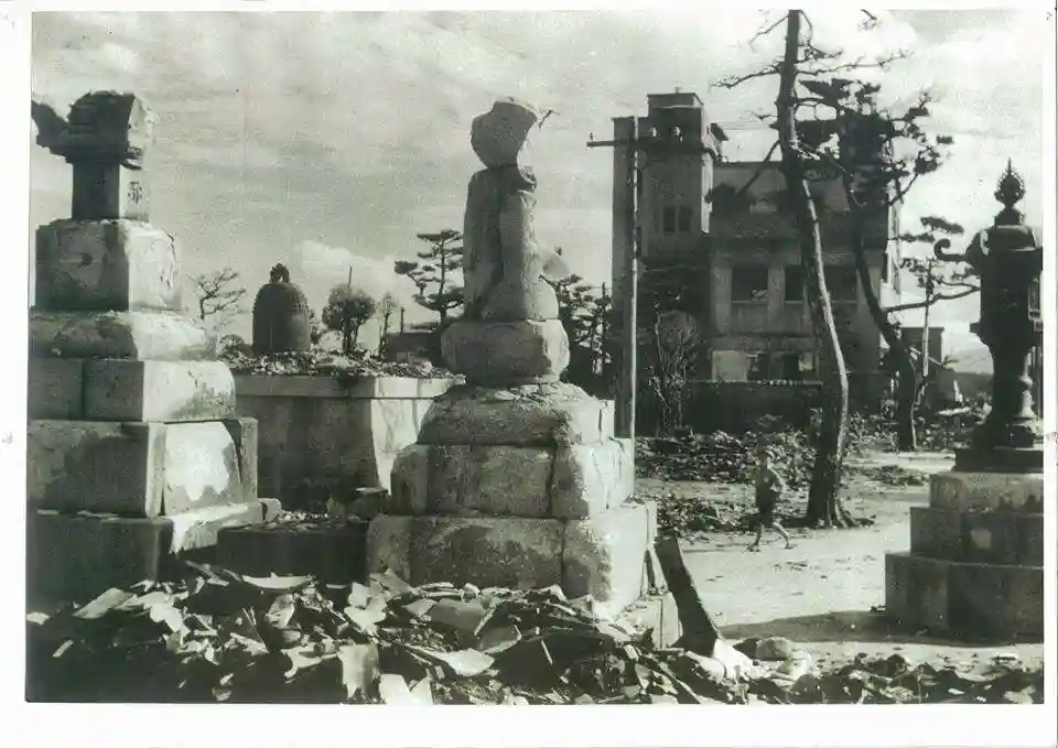 皆様は『津空襲』はご存じでしょうか⁉️太平洋戦争中のアメリカ軍による無差別爆撃です😢特に1945年7月28日の空襲は凄まじく、B29爆撃機78機により約11万発もの焼夷弾が投下され、津観音も国宝等を含めた多くの文化財や堂宇をことごとく焼失しました⤵️