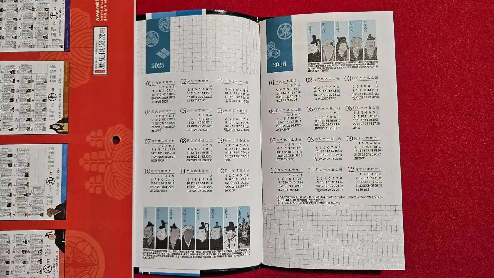 (株)コミュニティネットから販売の2025年カレンダー『戦国武将暦譜』と『戦国手帳』に津観音の豊臣秀吉・徳川家康像・藤堂高虎が使われています。手帳には戦国時代のその日に起きた出来事や、当時の装備や武将図鑑、用語解説、全国のお城の情報など便利な情報が手帳サイズにまとめられています。戦国ファンの方は是非、ご覧ください。